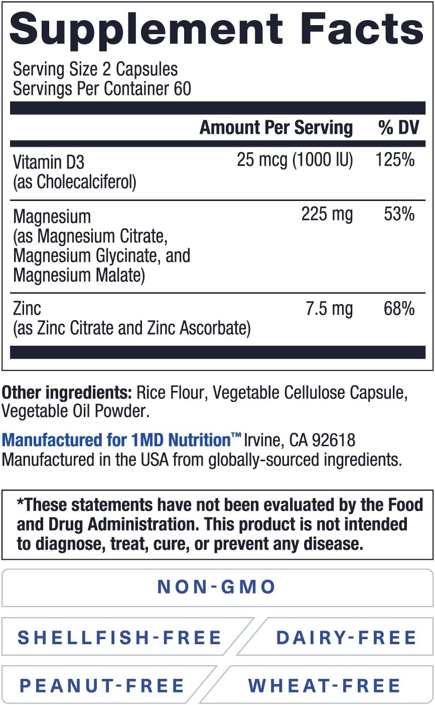DESCRIPTION : 1MD Nutrition MagMD Plus - Magnesium with Zinc & D3 | Promotes Heart Health, Supports Bone & Muscle Strength, and Aids Immune System - 120 Ct