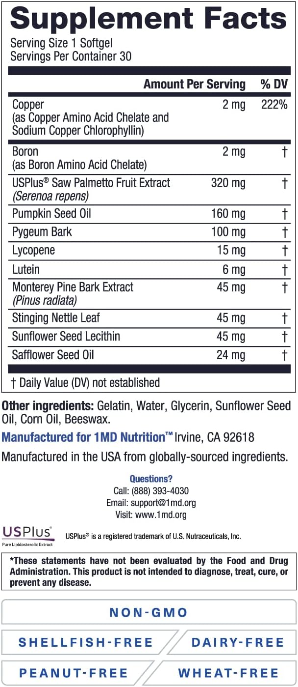 DESCRIPTION : 1MD Nutrition ProstateMD Saw Palmetto Prostate Support Supplement - Support for Urinary Tract and Frequent Bathroom Urges | 30 Day Supply