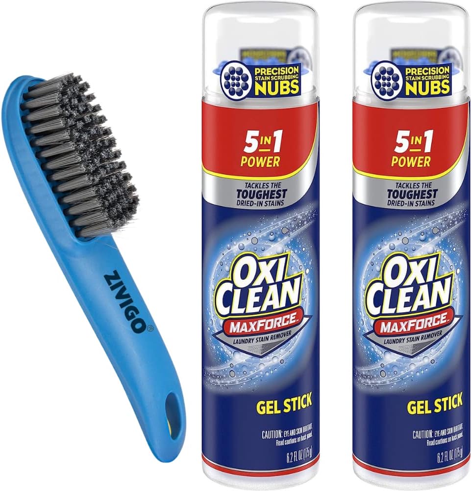 2 Oxi, Clean Max Force Gel Stick Stain Remover, 6.2 Ounce - Bundled With Laundry Stain Brush Remover (Compatible With Oxiclean)