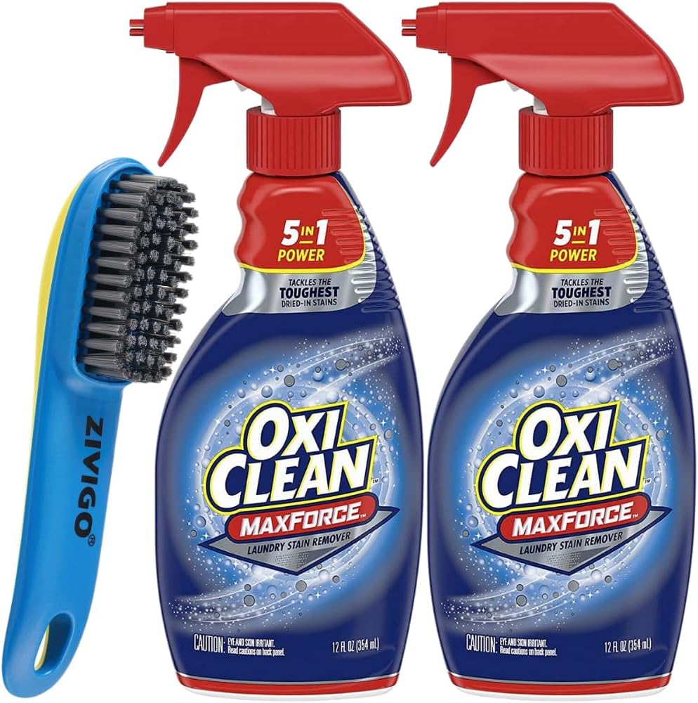 2 Oxi, Clean® Max Force Spray, Laundry Stain Remover, 12 Ounce, Bundle With Zivigo Laundry Stain Brush For Scrubbing Out Tough Stains
