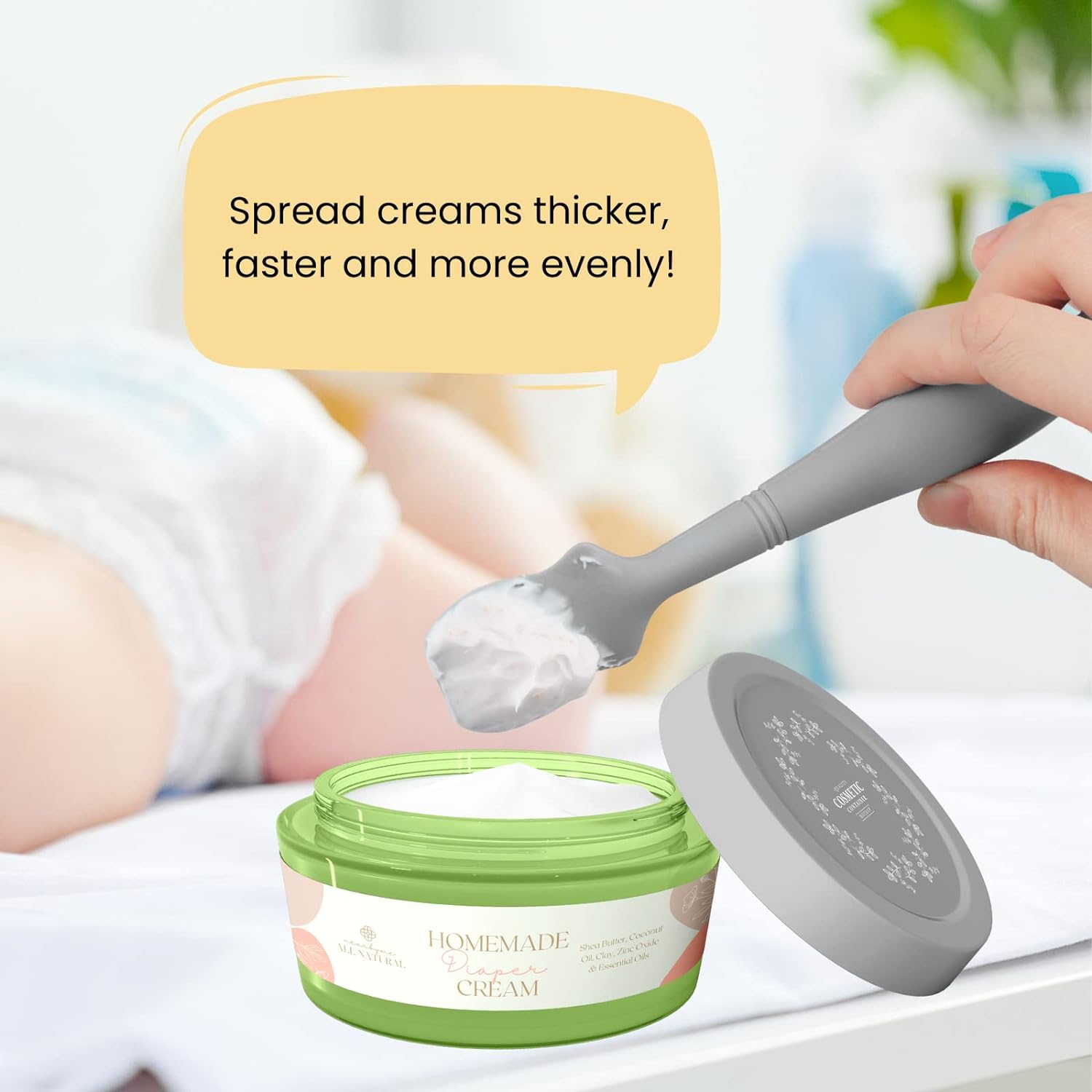 Soft and Flexible Silicone: Each of our diaper cream spatula is made of high-quality soft silicone materials. The materials are BPA-free, Toxin-free, and Dishwasher and Freezer Safe10Improved Design: The diaper cream spatulas come with handy suction cup base will secure to any flat surface, so you can bring it with you into public restrooms when you need to use the changing table10Compact Size: This brush measures at about 6.5 inches, Whether out shopping with the baby or in the car, add it to your diaper bag collection and enjoy the handiness it offers anytime anywhere10Makes Diaper Cream Application Easier: Simply scoop a generous amount of cream onto the brush then rub it on your baby’s backside. Diaper cream goes on smoother, thicker, and faster with our incredible diaper rash spatula10How to use: Before the first use wash the diaper cream brush with hot soapy water. Always ensure that baby's bottom is thoroughly cleaned and patted dry before applying diaper cream