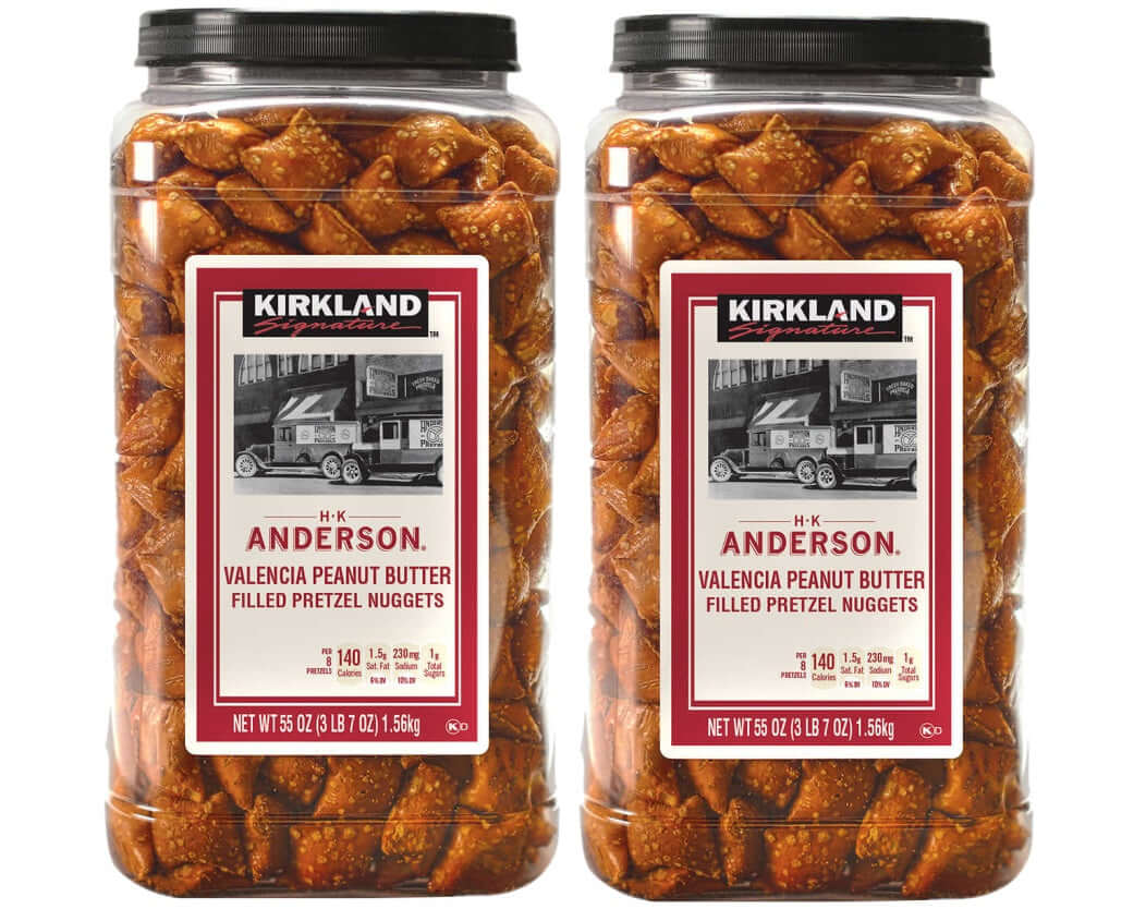2 Pack | KS Peanut Butter Filled Pretzel Nuggets, 55 oz Product Details Peanut Butter Filled Pretzel Nuggets Valencia peanut butter Kosher (2) 55 oz containers. Peanut Butter Filled Pretzel Nuggets, 55 oz 2 Pack