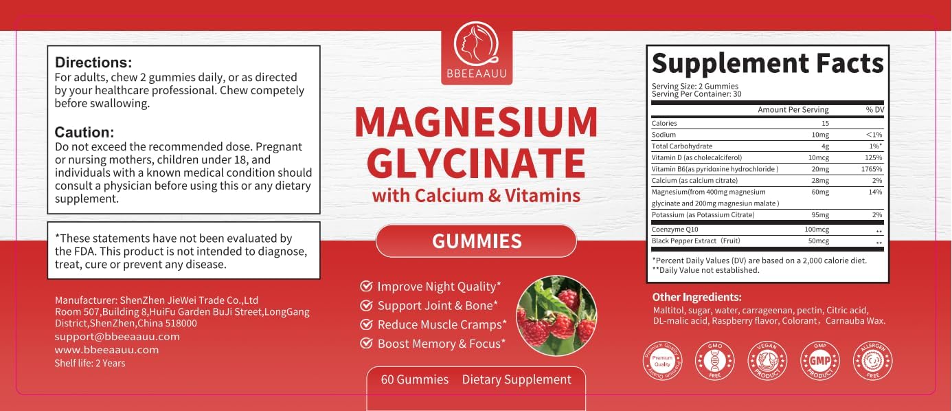 More Advanced Materials: No Need To Worry About Bad Effects, Beau Magnesium Calm Gummies Is Gluten Free, Non-Gmo, Made From Premium Raw Materials And Produced Through Rigorous Processes. Magnesium Complex Supplement Will Become A Part Of Family Health