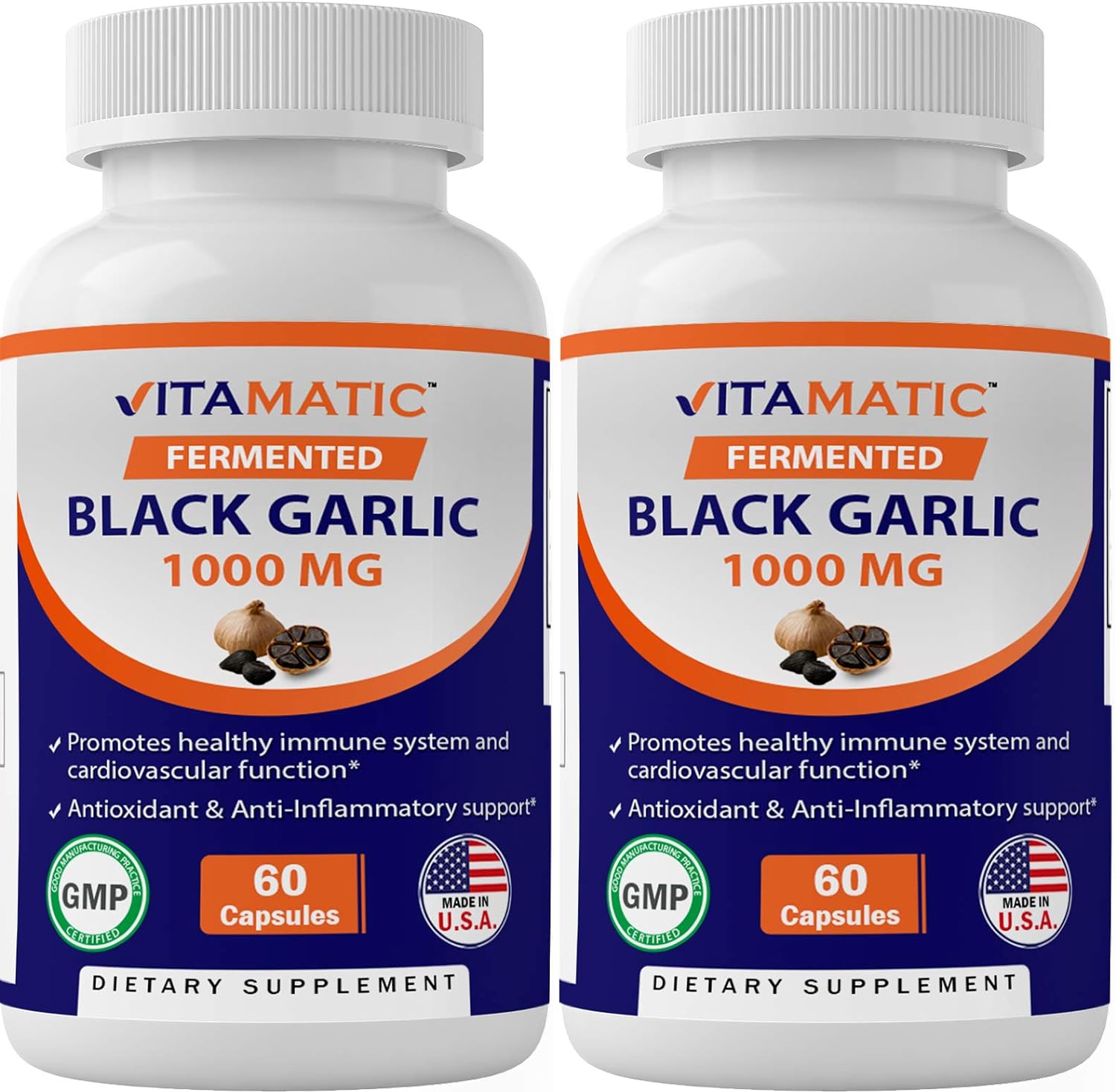 2 Pack - Vitamatic Fermented Black Garlic Extract 1000 Mg 60 Capsules - Non-Gmo, Gluten Free - Antioxidant And Cholesterol Support (Total 120 Capsules)