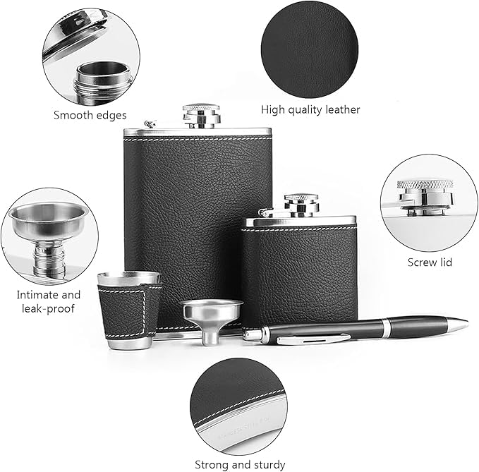 Crafted from high-quality stainless steel, these flasks are rust-resistant, durable, and easy to cleanβperfect for outdoor adventures, camping, hiking, festivals, or travel. Their compact pocket-friendly design makes them easy to carry discreetly, while the stylish look makes this set an excellent gift for men and women.