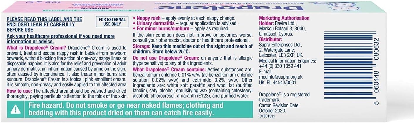 About this item 2 X Drapolene Cream 100G Tube Prevents And Treats Nappy Rash Soothes And Protects Baby Bottom From Newborn Onwards 2 x Drapolene Cream 100g Tube Prevents and Treats Nappy Rash Soothes and Protects Baby Bottom from Newborn Onwards Brand: Drapolene Product type: SKIN PROTECTANT 100 g Pack of 2 › See more product details,2 X Drapolene Cream 100G Tube Prevents And Treats Nappy Rash Soothes And Protects Baby Bottom From Newborn Onwards,2 x Drapolene Cream 100g Tube Prevents and Treats Nappy Rash Soothes and Protects Baby Bottom from Newborn Onwards,Brand: Drapolene,Product type: SKIN PROTECTANT,100 g Pack of 2