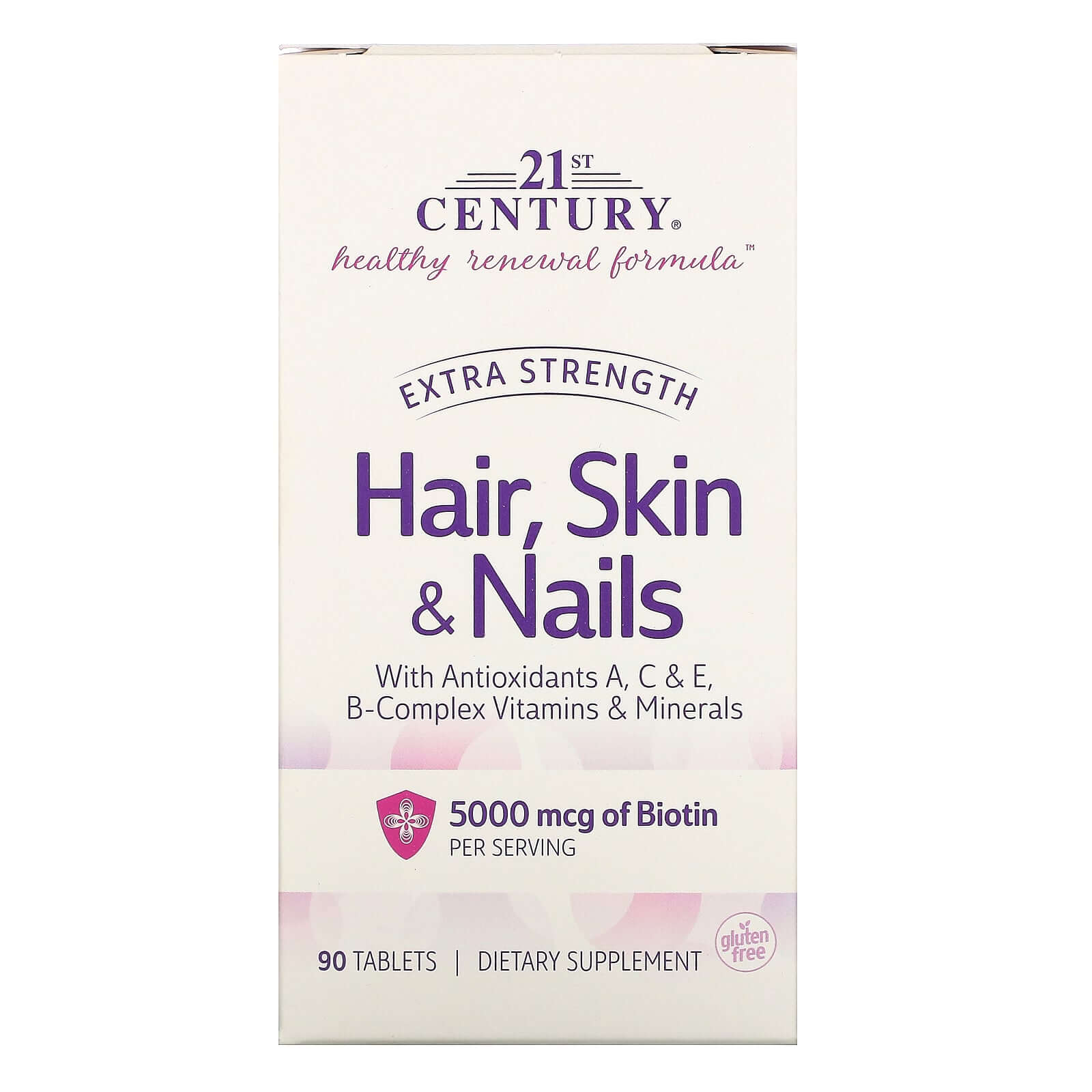 21st Century® Healthy Renewal Formula™ Extra Strength Hair, Skin & Nails works to help support your beauty from within. Biotin and Vitamin A are nutrients needed to promote lustrous hair, strong nails and vibrant skin.