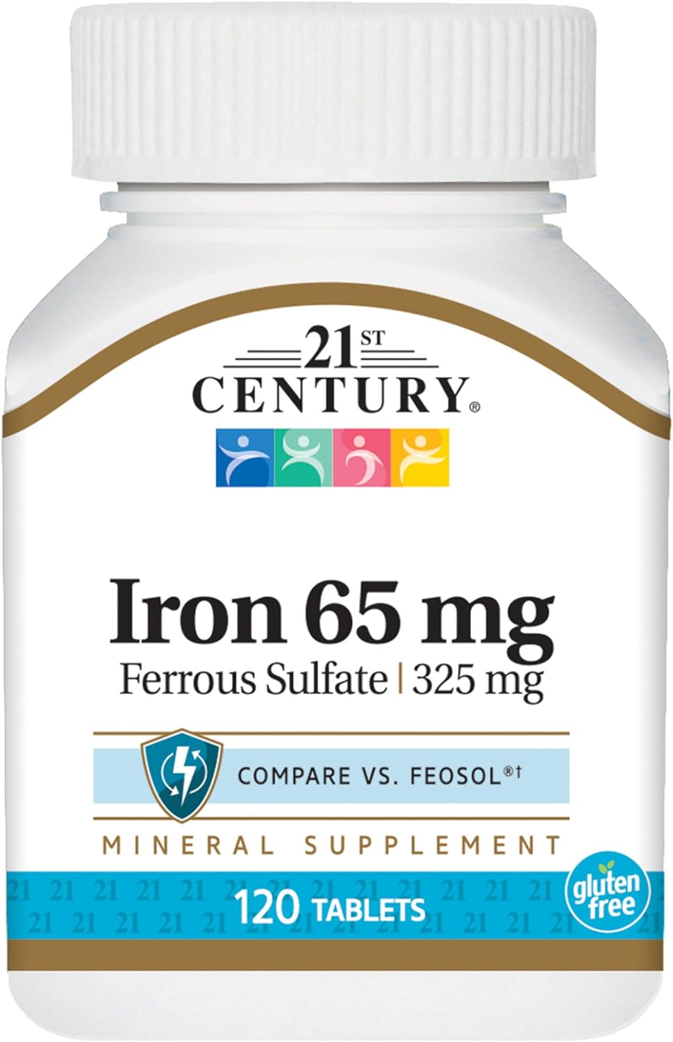 21St Century Iron 65 Mg Ferrous Sulfate 325 Mg Tablets, 120 Count (Pack Of 2)