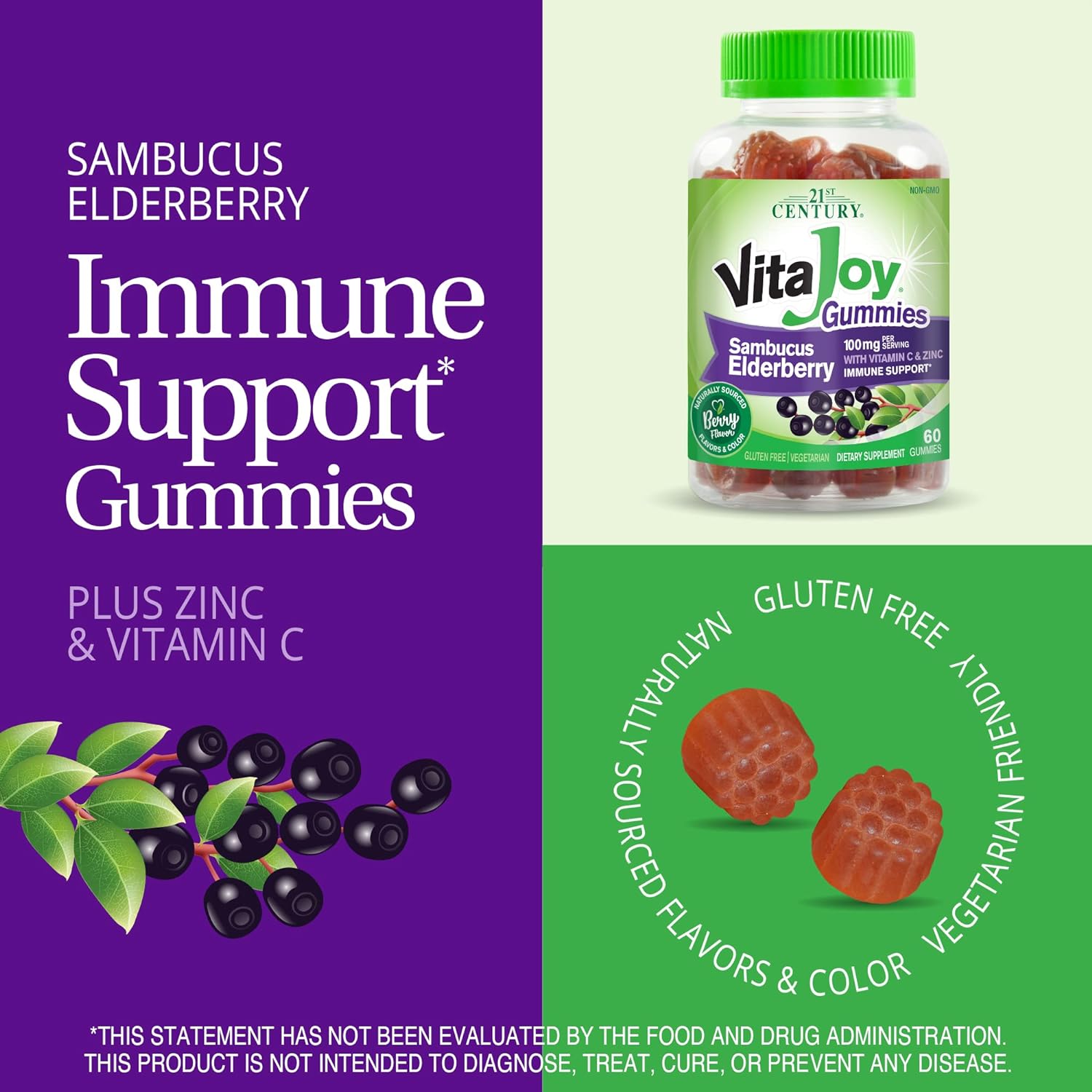 21St Century Vitajoy Sambucus Elderberry Gummies, Berry, 60 Count