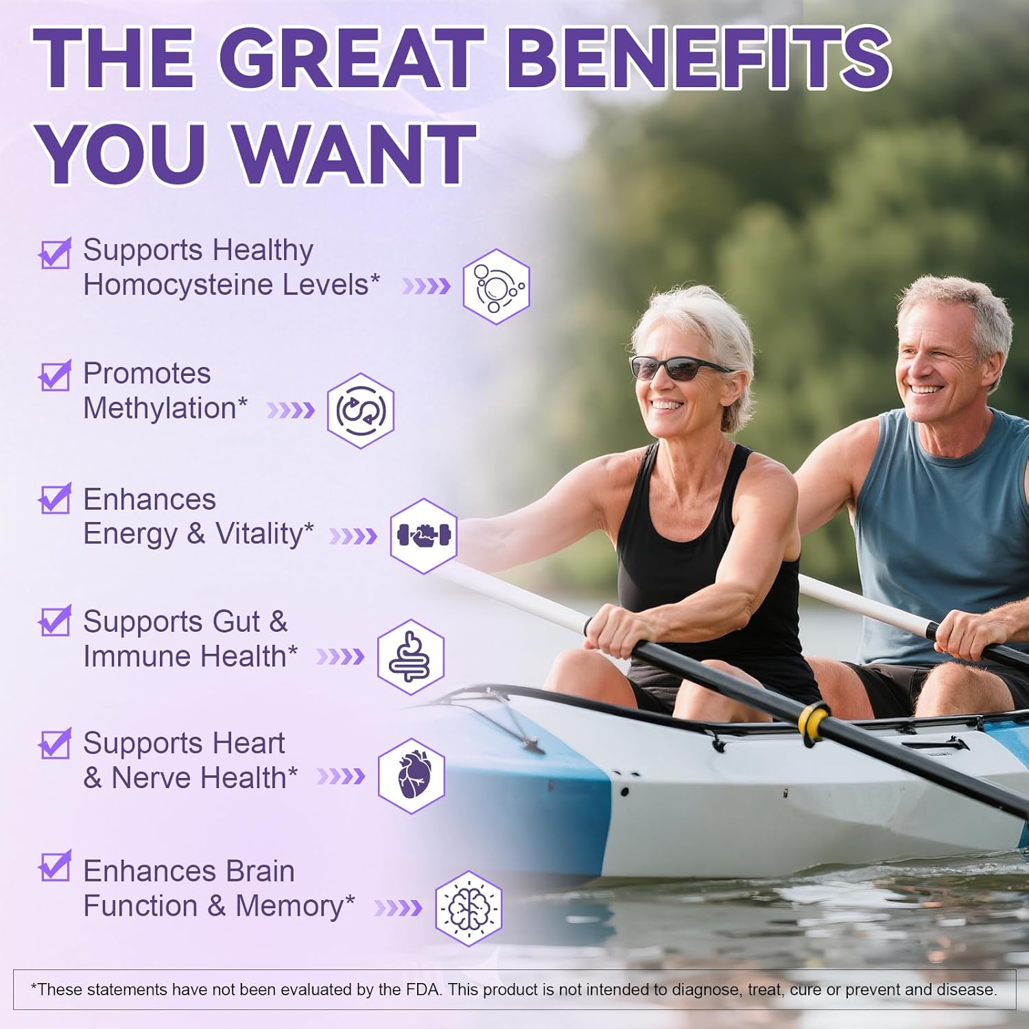 Methylated Multivitamin for Men & Women + TMG Supplement: This advanced formula combines potent vitamins, minerals, herbs, and amino acids — including methylated B-complex nutrients like active B12 (methylcobalamin) and folate (5-MTHF), as well as key amino acids such as Taurine and TMG — to support efficient methylation. It promotes cellular health, energy production, metabolic function, and overall wellness