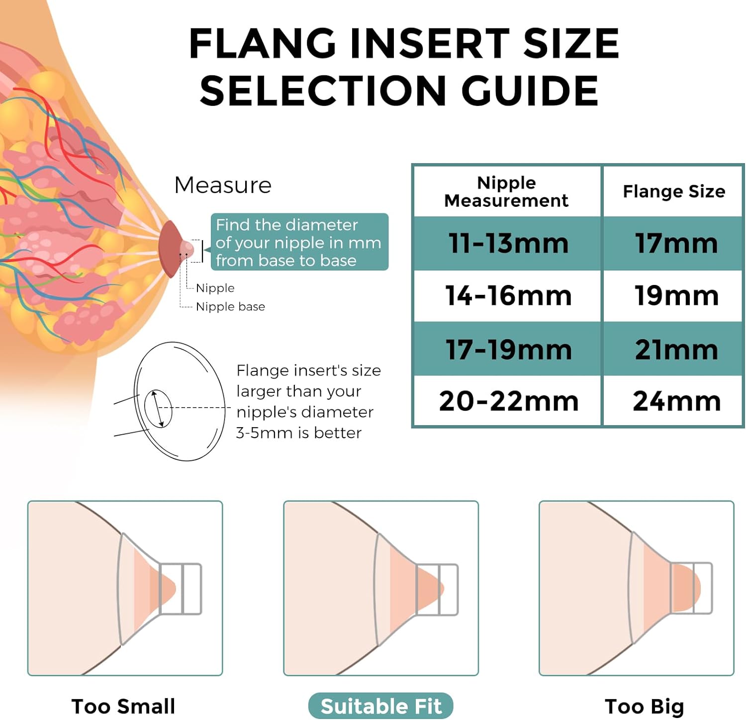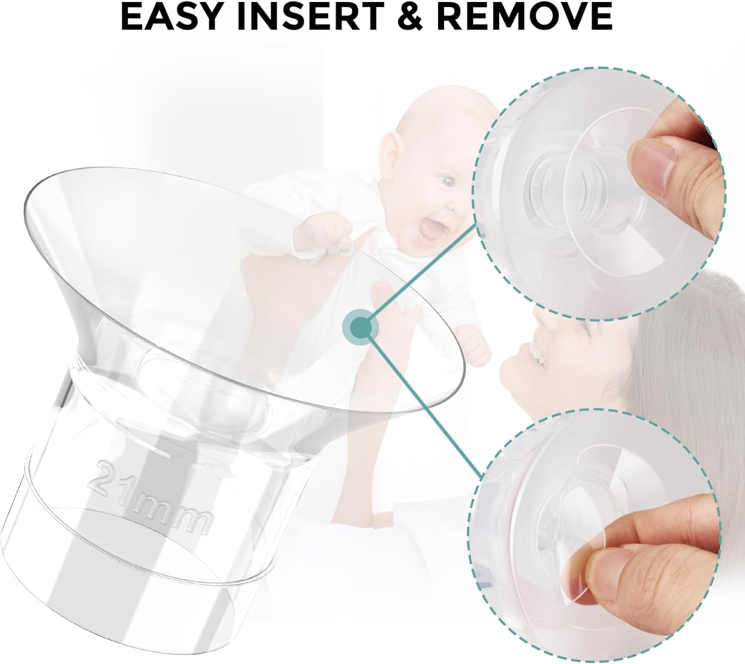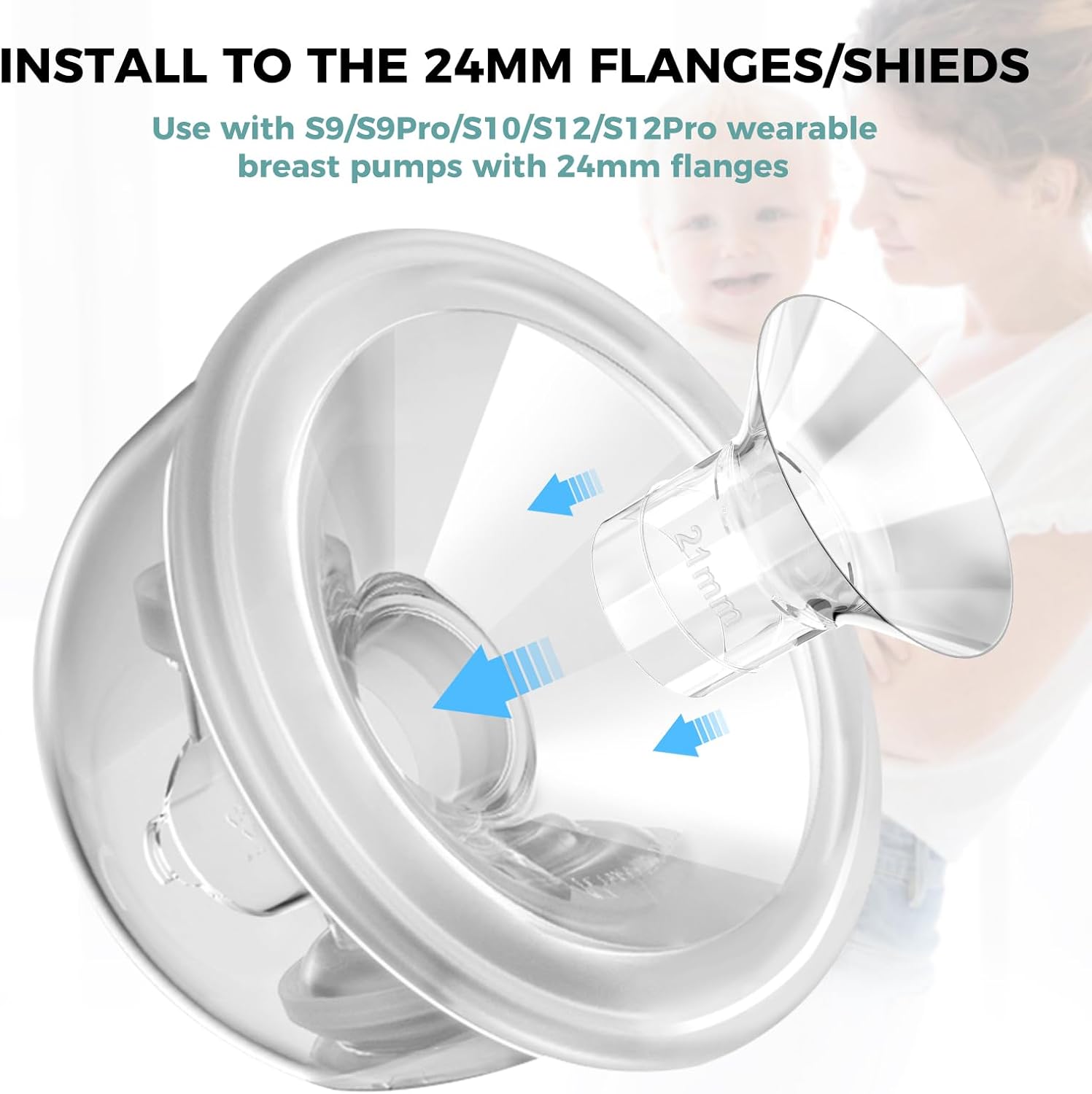 Wide Range of Applications: CreGear 21mm flange inserts are suitable for Momcozy/Tsrete/Spectra/Zomee/Bellababy S9/S9Pro/S10/S12/S12Pro wearable breast pumps with 24mm silicone flange/shields10Making Pumping More Comfortable: CreGear 21mm flanges effectively reduce the nipple tunnel from 24mm to 21mm. It's a great helper that allows moms to pump more milk in greater comfort while minimizing nipple trauma or irritation10Food-Grade Silicone Material: CreGear 21mm flange inserts are made of food-grade silicone to keep your breast milk safe while you use them. It's skin-friendly, soft and odorless, nice pump parts replacement10Easy To Install and Clean: One-step installation and removal. The flange insert can be cleaned with water steam, boiling water or microwave steam bag10Replace Regularly: Flange insert size is critical for comfort and efficient pumping. After long-term use, the flange insert may become deformed, hardened or yellowed. It's recommended to replace the flange insert every 1 to 2 months