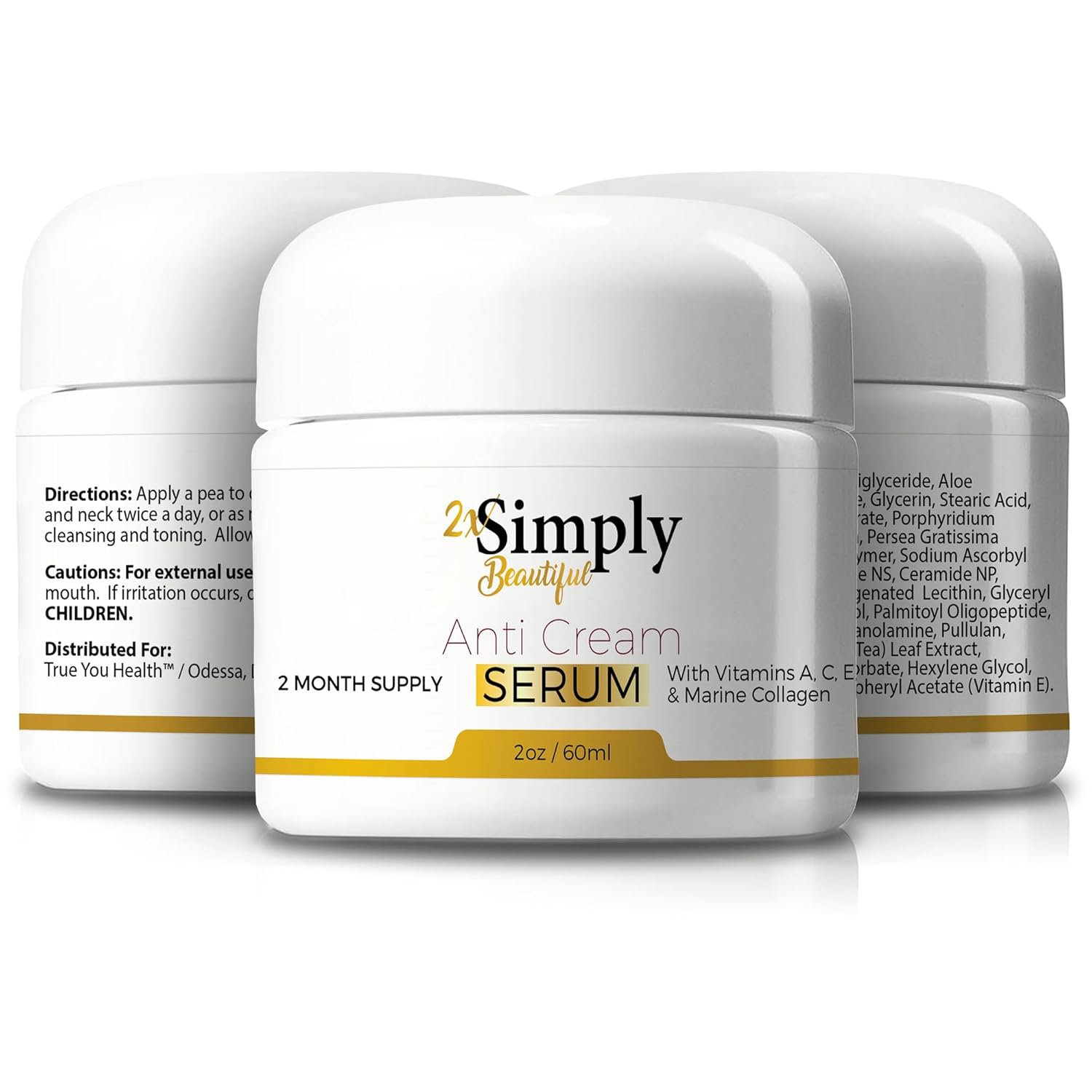 2X Simply Beautiful Anti Aging Cream 2 Month Supply - Promote Youthful Looking Skin With Collagen & Vitamin A, C, & E - Firm & Rejuvenate Skin - Improve Wrinkles & Hydration - Anti Aging Skincare