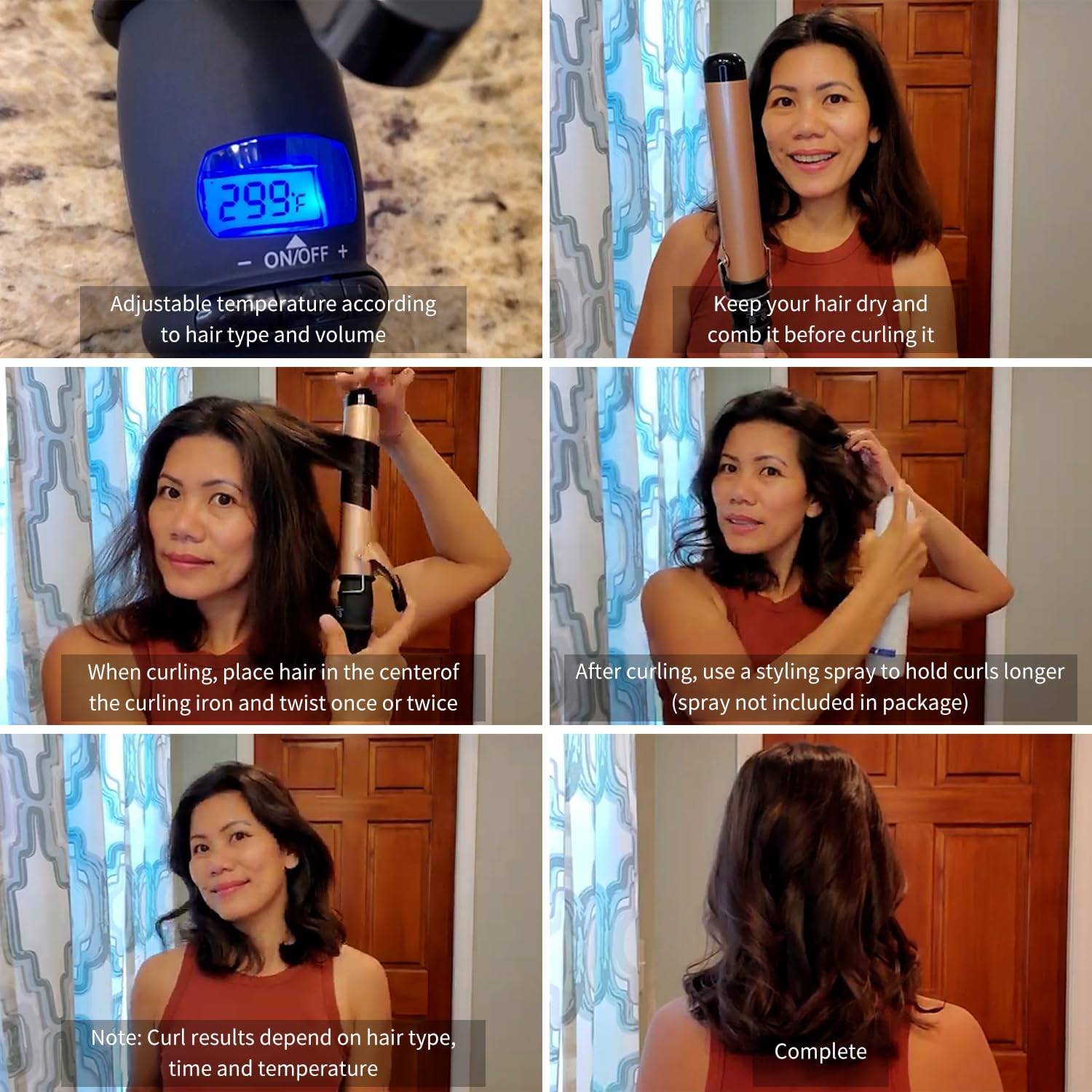 ??360° SWIVEL Curling Iron: The cord on this long barrel curling iron can 360° rotation to use flexibly. The rotating curling iron comes with a heat resistant glove and an anti-scald tip, which is good to not burn hands. This high quality sturdy 1.5 inch curling iron has a comfortable grip, our video with tutorial which makes it easy to add curly loose waves
