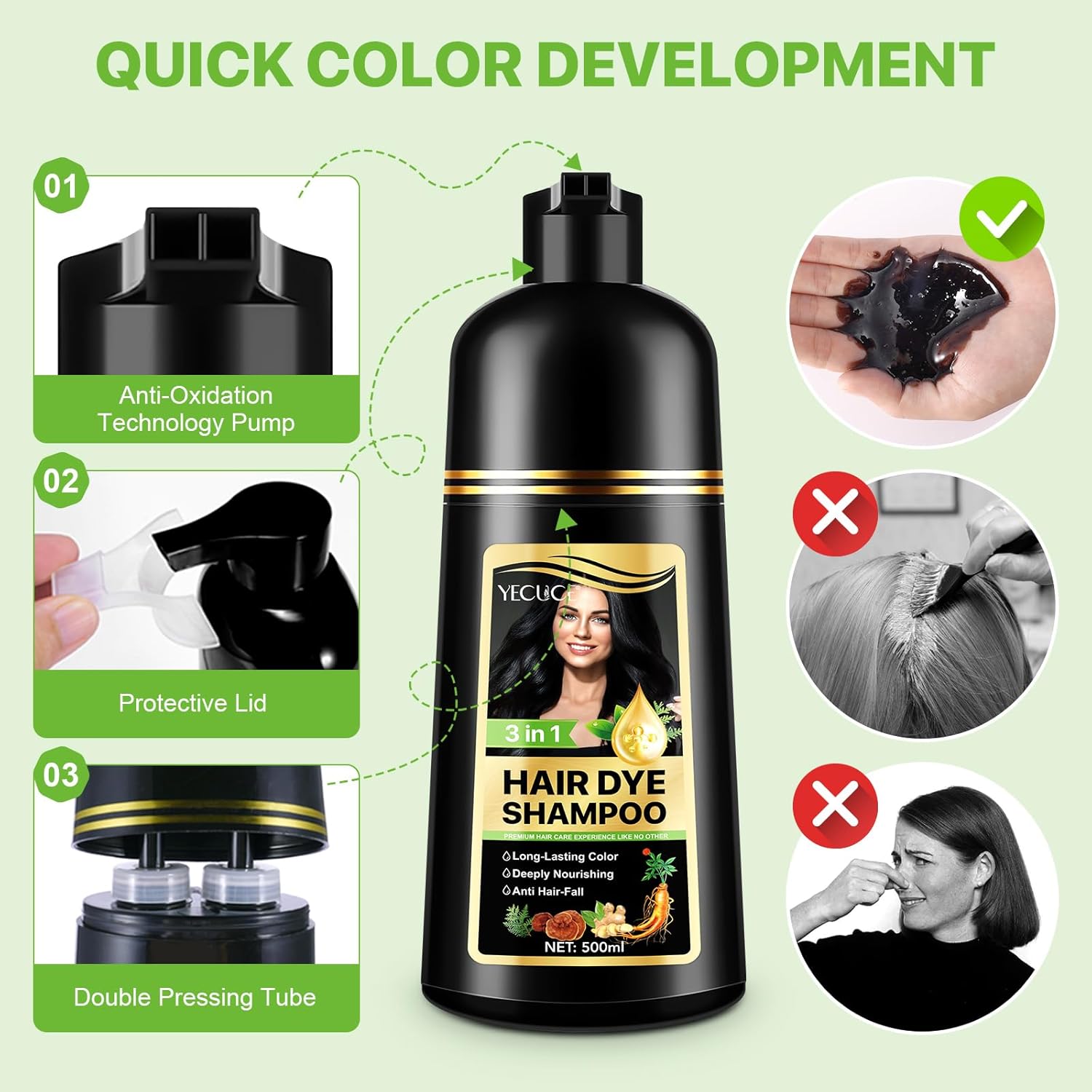 3-In-1 Black Hair Dye Shampoo -Herbal Formula Nourishing Formula Hair Care For Men & Women, Long-Lasting Color & Strengthening Benefits