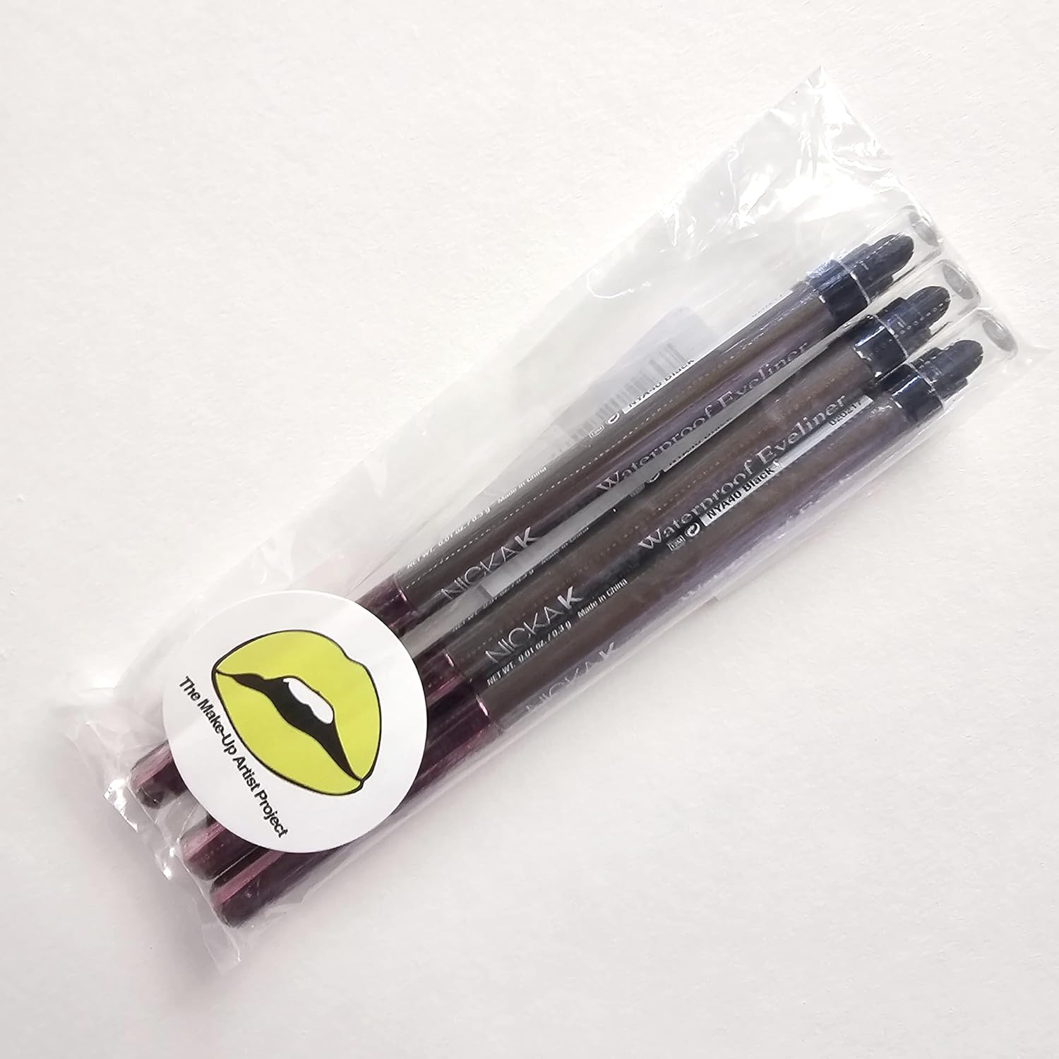 3 Pack Bundle Of Nya40 Black Waterproof Eyeliner, Long-Lasting Black Color Intensity, Mechanical Liner With Sharpener & Smudger