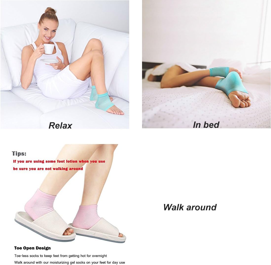 About this item ??Function: Gel heel socks are designed to moisturize, soften and smooth dry skins, treat heel cracks and prevent skin from chapping, Relieve heel pain,make your feet look fresh and nourishing. ??Built-in gel pad: With moisturizing gel in heel part of socks, it is washable and durable for repeated use; Paired with foot cream will get better moisturizing effect. ??Good design: toe open design with good breathability is good for keeping your feet cool and dry. ??Easy to use: Gel socks work well even when you rest or sleep, suitable for people who stand for long period or women who often wear high heel shoes for long time. ??One size fits most: With good elasticity, so it can fit for both women and men.We have confidence in our products, if there is any initial failure or damage, or if you have any questions, please contact us. › See more product details,??Function: Gel heel socks are designed to moisturize, soften and smooth dry skins, treat heel cracks and prevent skin from chapping, Relieve heel pain,make your feet look fresh and nourishing,??Built-in gel pad: With moisturizing gel in heel part of socks, it is washable and durable for repeated use; Paired with foot cream will get better moisturizing effect,??Good design: toe open design with good breathability is good for keeping your feet cool and dry,??Easy to use: Gel socks work well even when you rest or sleep, suitable for people who stand for long period or women who often wear high heel shoes for long time,??One size fits most: With good elasticity, so it can fit for both women and men.We have confidence in our products, if there is any initial failure or damage, or if you have any questions, please contact us