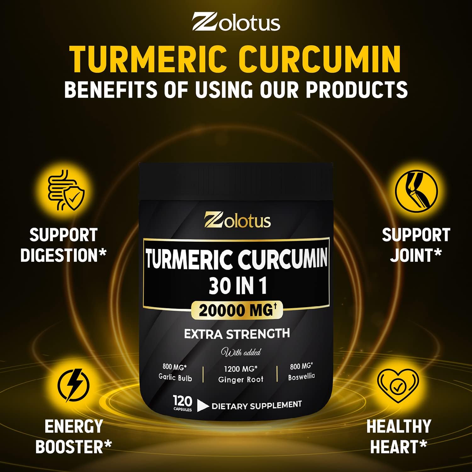 ? Max-Potency : Our Turmeric Curcumin Extract is 95% standardized curcuminoids, Maxium Extract Available on the Market. Other Brands are just using Turmeric powder? Special Formula 20000 mg Per Capsule: That is Turmeric Curcumin supplements available with high strength. Just one Capsule Per Day, give you all the Energy you need for a day long? 30 in 1 : Zolotus Turmeric Curcumin supplements Included Ginger, Garlic Bulb, Bromelain, Moringa, Black Pepper. These powerful ingredients will help you many many health benefits in both men and women? All Natural: Our Premium Lions Mane Mushroom Formula is made with the high-quality ingredients, Vegan, Non-Gmo, Gluten-free. This solution is safe and effective for your wellness? Formulated in the USA: Zolotus Products, manufactured in a GMP-certified facility, undergo rigorous third-party testing, ensuring an authentic, sustainable process. Your satisfaction is our priority—contact us for swift resolution of any questions