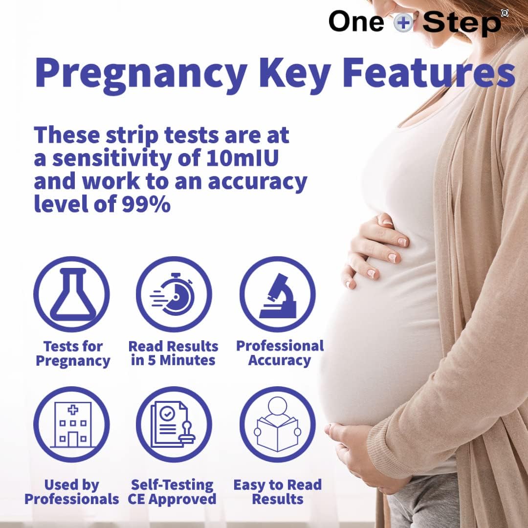 ENHANCED SENSITIVITY PREGNANCY TEST: The One Step Pregnancy Test Strip is designed for enhanced sensitivity, detecting hCG levels as low as 10miu in urine. It offers a rapid one-step test for early pregnancy detection, providing accurate results with coloured lines