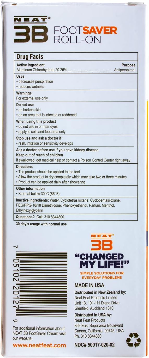 About this item Prevents excessive foot perspiration and eliminates foot odor Roll-on antiperspirant for feet Helps prevent foot infections eg: Tinea Pedis and improves foot hygiene and comfort Simple to use and safe for the whole family Active Ingredient= Aluminum Chlorohydrate 22.5% › See more product details,Prevents excessive foot perspiration and eliminates foot odor,Roll-on antiperspirant for feet,Helps prevent foot infections eg: Tinea Pedis and improves foot hygiene and comfort,Simple to use and safe for the whole family,Active Ingredient= Aluminum Chlorohydrate 22.5%