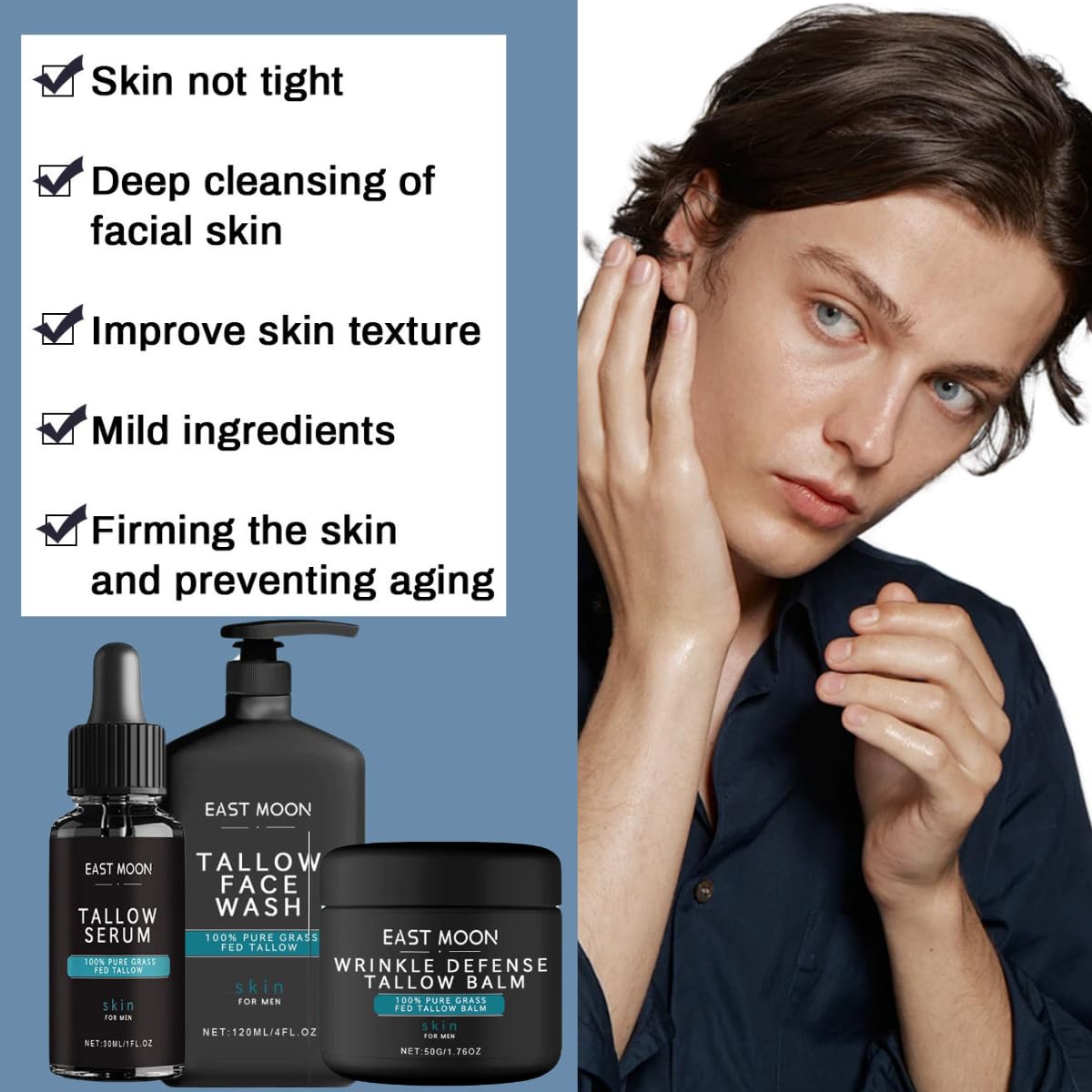 3Pcs Skin Care For Men,Tallow Balm Face Moisturizer,Tallow Balm Skin Care Set For Men