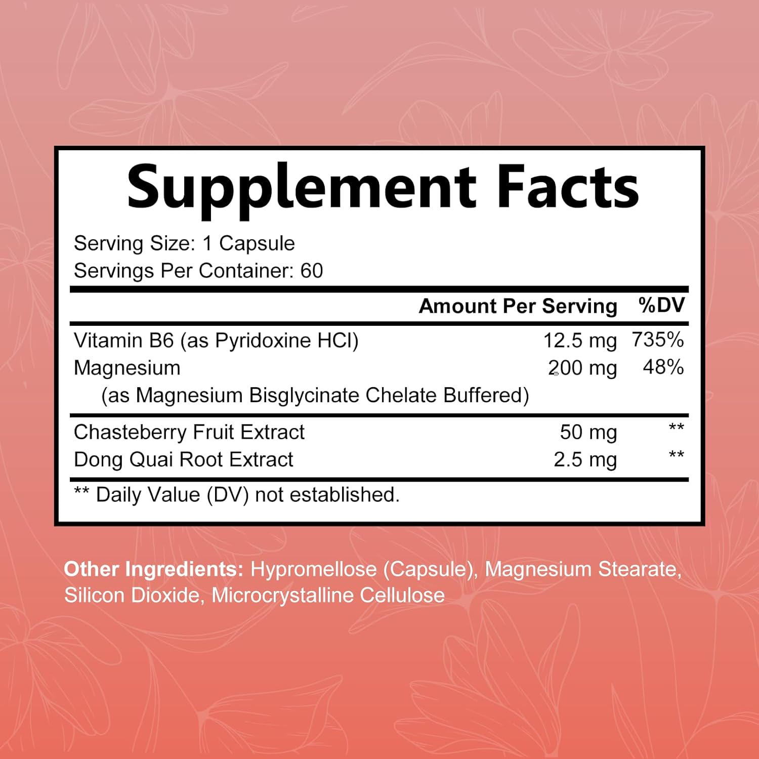 Magnesium Complex for Women's Well-Being: When taken together, magnesium glycinate, chasteberry, dong quai, and vitamin B6 offer a comprehensive approach to supporting women's health
