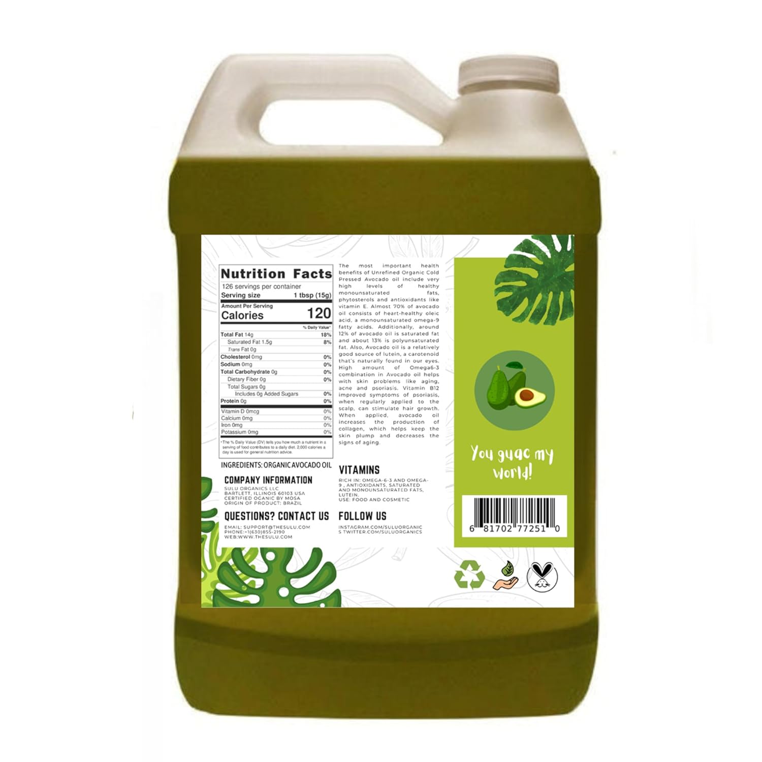 4 Lbs/64 Fl.Oz Certified Organic Unrefined Extra Virgin Raw Avocado Oil