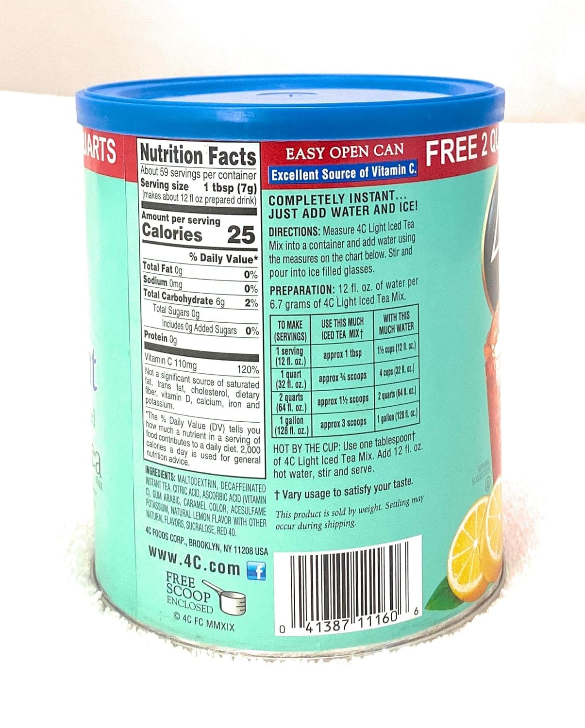 4C Light Powdered Drink Mix Cannisters, Light Decaffeinated Iced Tea, 22 Quarts, Family Sized Cannister, Low Calorie, Thirst Quenching Flavors (Light Decaf Iced Tea, 13.9 Ounce (Pack Of 1))