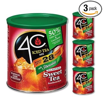 4C Reduced Sugar Powdered Drink Mix Canisters, Iced Tea, 28 Quarts, Family Sized Canister, Thirst Quenching & Refreshing Flavors (Sweet Tea, 36.9 Ounce (Pack Of 3))