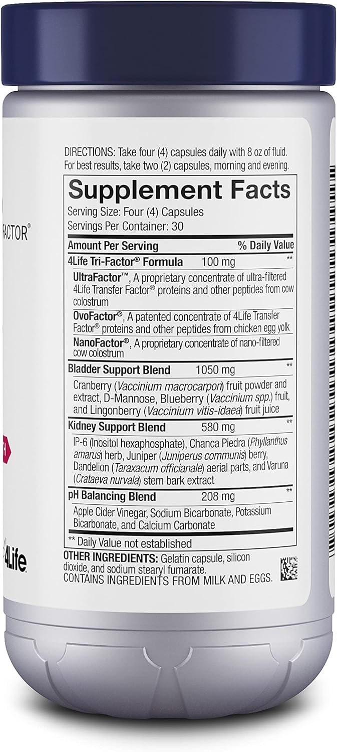 DESCRIPTION : 4Life Transfer Factor KBU - Dietary Supplement Supports Kidney, Bladder, and Urinary Health - Formula with Cranberry Extract, D-Mannose, and Blueberry - 120 Capsules