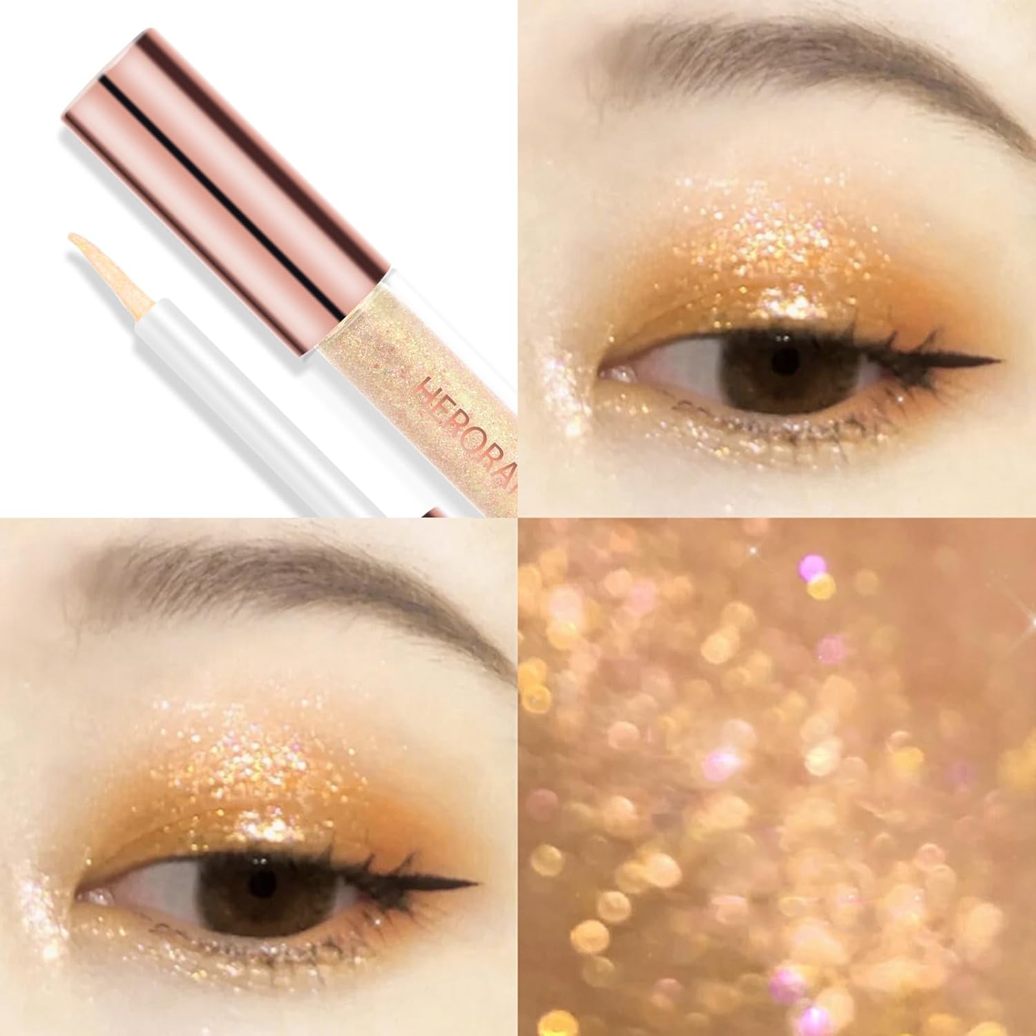 4Pcs Liquid Eyeshadow Set Crystal Diamond High-Gloss Liquid Liner Shimmer Glitter Highlight Metallic Liquid Shadows Quick-Drying Sequin Pearlescent Eye Makeup Cosmetic