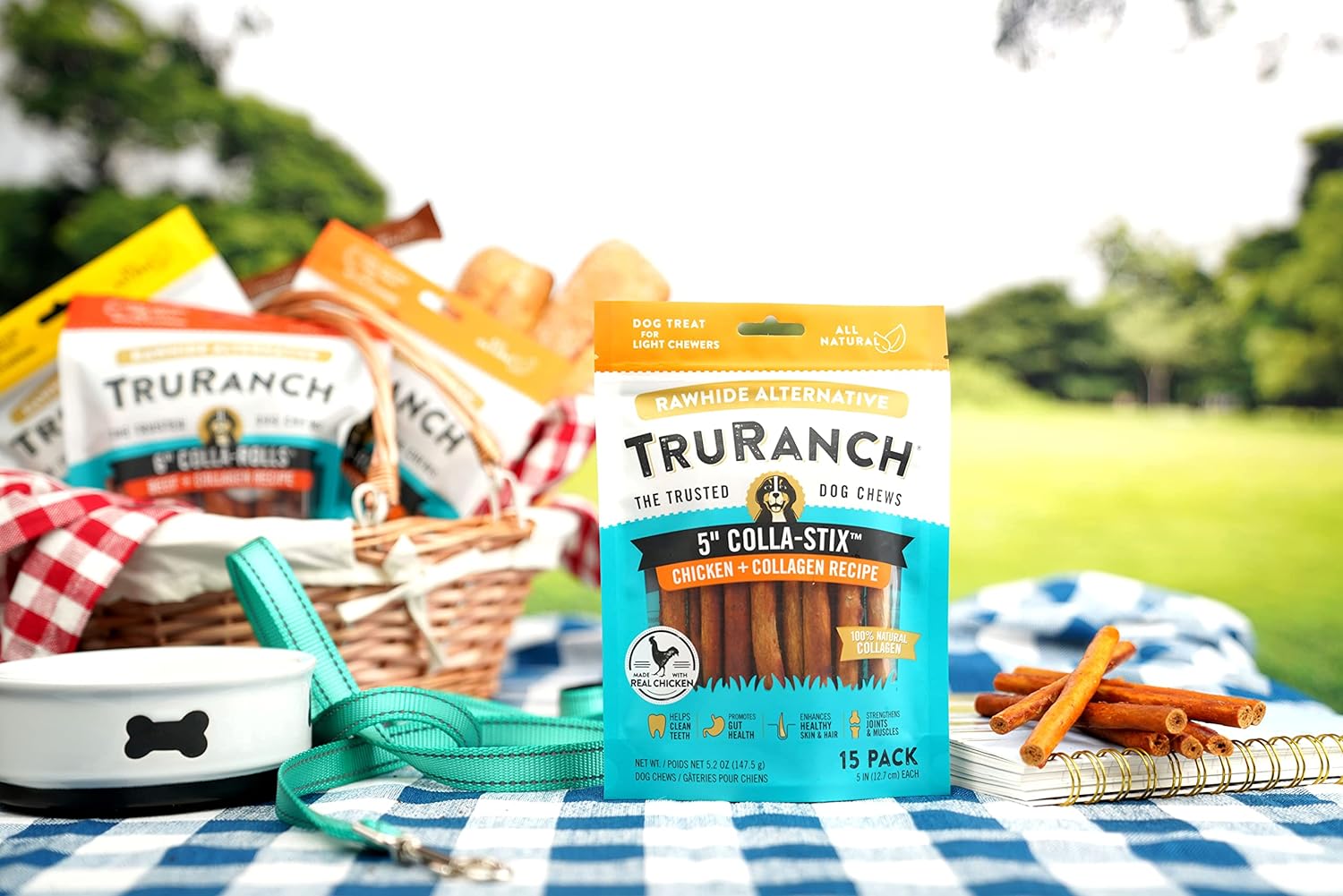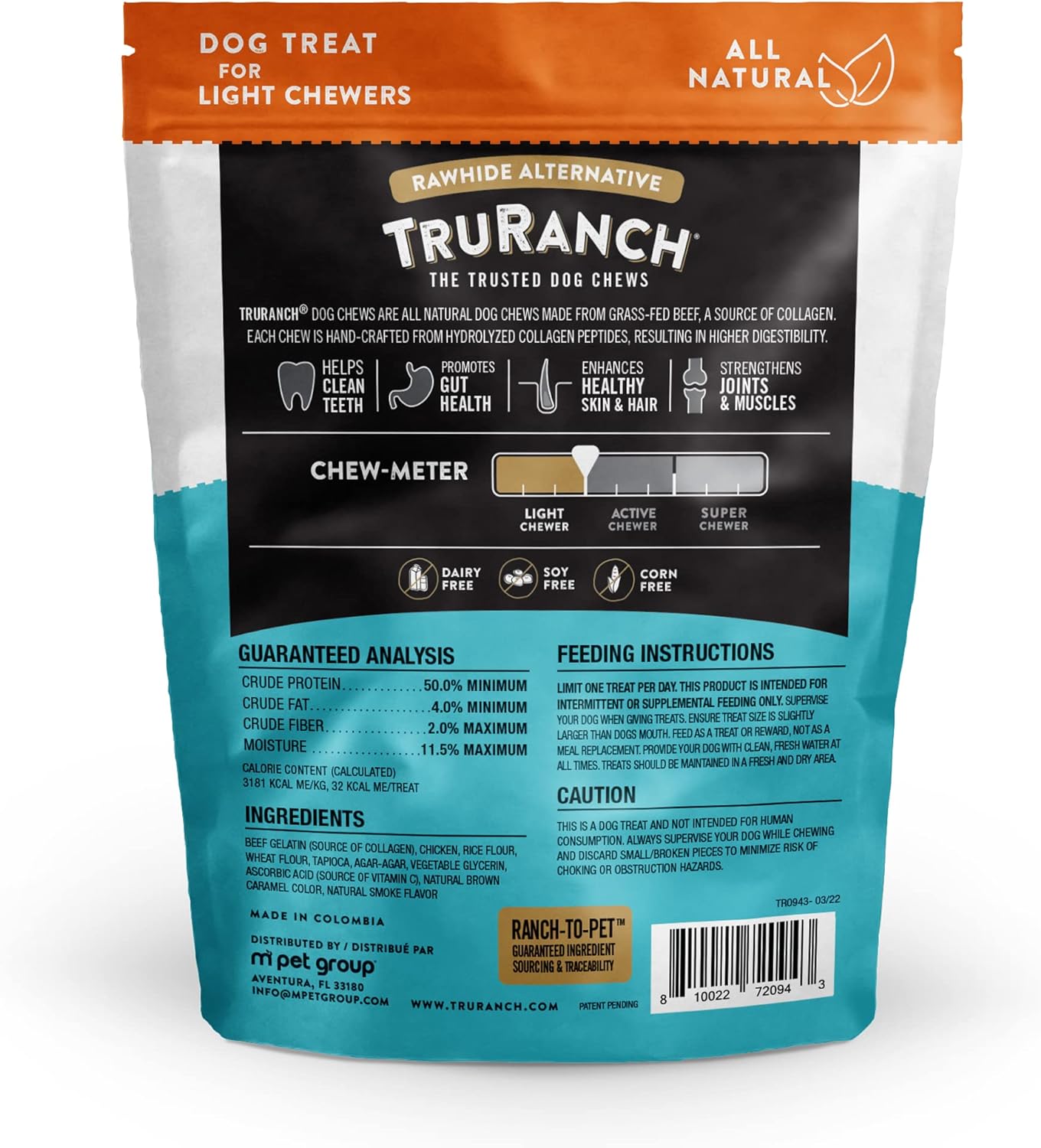 High-Quality Ingredients: Each TRURANCH Collagen Stick is made with real beef, chicken, or peanut butter, providing a scrumptious and safe alternative to rawhide. Free from dairy, soy, and corn, these treats are designed for all dogs, especially those with food sensitivities10Enhances Health: Packed with natural ingredients and beef gelatin, a rich source of collagen, our sticks help maintain strong joints and muscles, promote gut health, and assist in cleaning teeth while the natural fibers help enhance digestion10Allergy-Friendly Formula: Crafted without common allergens, our collagen sticks are perfect for dogs of all breeds and sizes. The absence of dairy, soy, and corn makes these chews a safe choice for dogs with specific dietary requirements10Supports Dental Hygiene: The unique texture of the TRURANCH Collagen Sticks helps scrape away plaque and tartar build-up, promoting healthy teeth and gums. Regular chewing helps keep your dog's breath fresher and dental health in check10Available in Various Sizes: Whether you have a small or large dog, our medium and large packs are ideal for tailoring to your dog's size and chewing habits, ensuring a satisfying and long-lasting chew experience