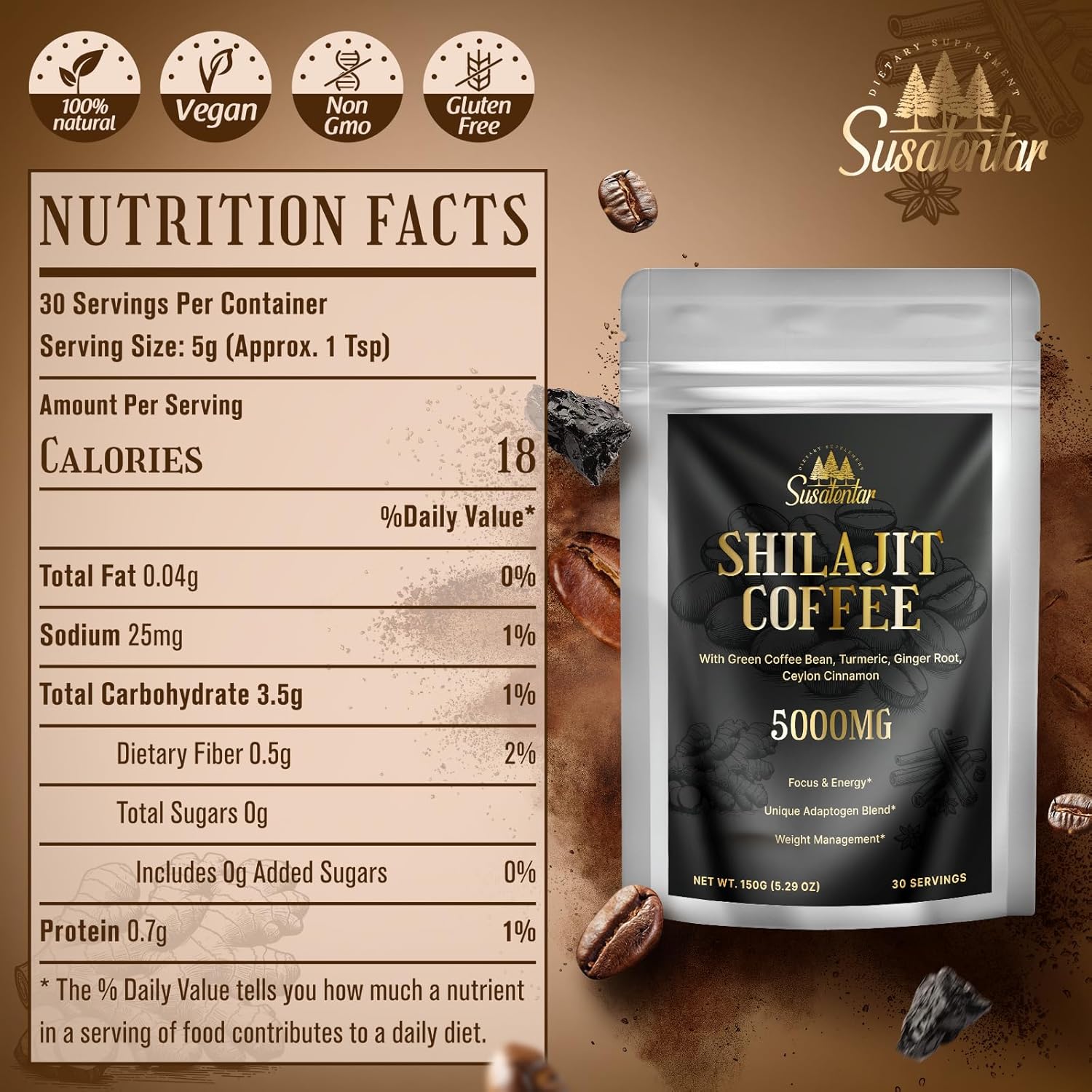 Unlock Ancient Energy With Every Sip Bid Farewell To Ordinary Instant Coffee And Embrace The Extraordinary. Our Blend Marries The Rich, Smooth Taste Of Organic Arabica Coffee With The Ancient, Powerful Secrets Of High-Potency Pure Shilajit. This Isn'T Just Coffee; It'S A Source Of Vibrant Energy And Mental Clarity, Powered By The Fulvic Acid Found In Himalayan Shilajit. This Remarkable Compound Is Packed With Essential Minerals And Bioactive Substances For Stamina And Nutrient Absorption, Setting It Apart As The Superior Choice For Those Seeking Sustained Wellness And Peak Performance. Synergistic Blend Of Adaptogens We Believe In The Power Of Synergy, Which Is Why Our Shilajit Pure Himalayan Organic Coffee Is Enriched With A Unique Combination Of Adaptogens - Turmeric, Ginger, Green Coffee Extract, And Ceylon Cinnamon. These Extraordinary Ingredients Complement Shilajit Beautifully, Amplifying Its Benefits For A Coffee Experience Unlike Any Other. Unwavering Commitment To Purity And Quality Our Dedication To Purity And Quality Is Absolute. Our Pure Shilajit Coffee Is Crafted Without Any Artificial Additives, Ensuring You Receive A Pure, Authentic Shilajit Coffee Experience Every Time. We Take Pride In Offering A Product That Aligns With Your Wellness Goals, Providing You With The Cleanest, Most Beneficial Coffee Possible. Transform Your Daily Coffee Into A Wellness Journey Experience Coffee That Does More Than Just Wake You Up. Each Cup Of Our Pure Himalayan Organic Shilajit Coffee Is A Step Towards Greater Well-Being And Balanced Energy. Make The Smart Choice And Elevate Your Daily Ritual With Our Shilajit Coffee Supplement. Embrace The Journey Of Wellness And Vitality, And Let Every Sip Invigorate Your Body And Soul