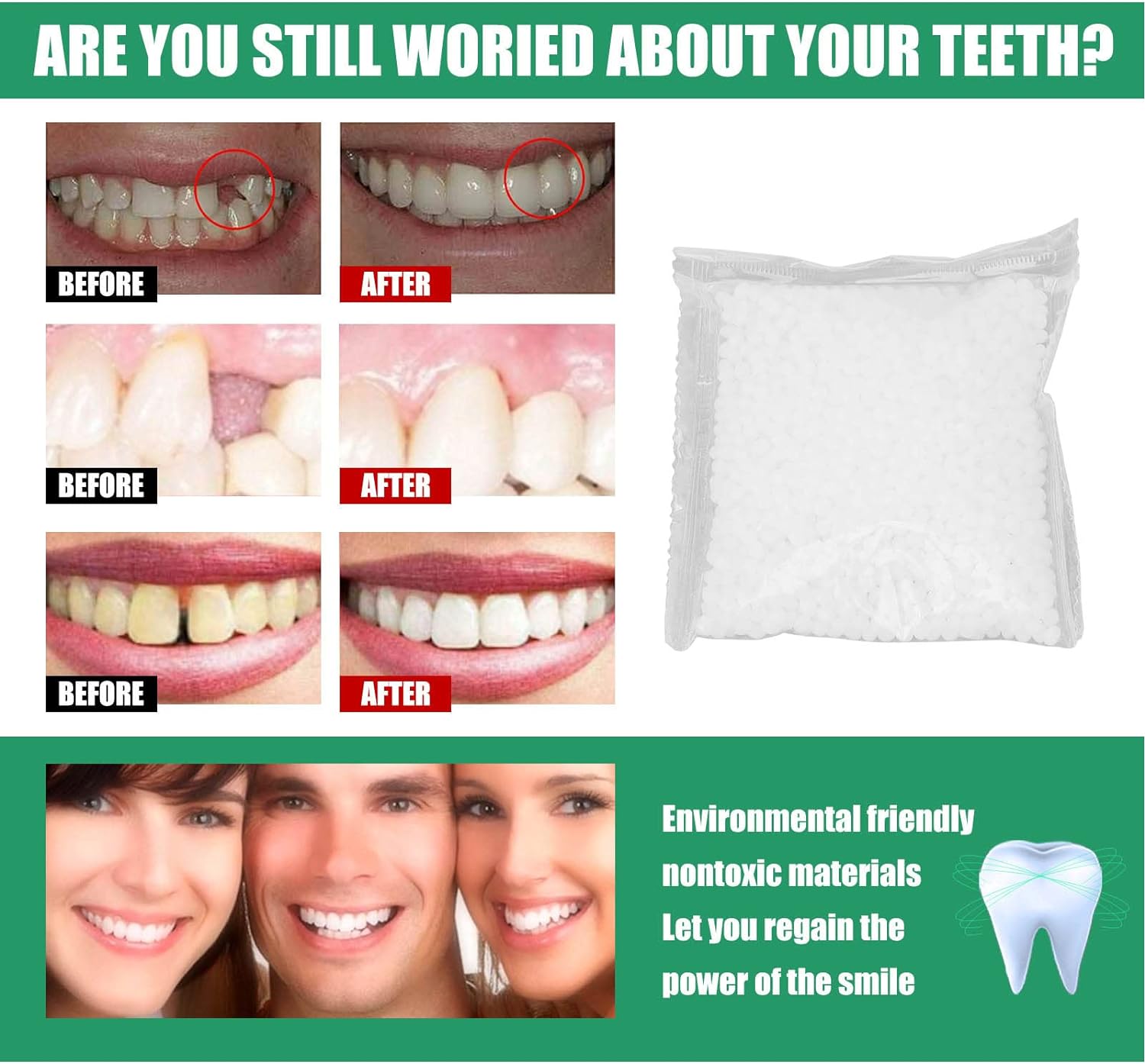 50g Tooth Solid Gel Temporary Repair Kit, Degradable Tooth Repair Beads Thermoplastic Beads, Replacement Teeth Filling Fixing Beads for Broken Missing Teeth