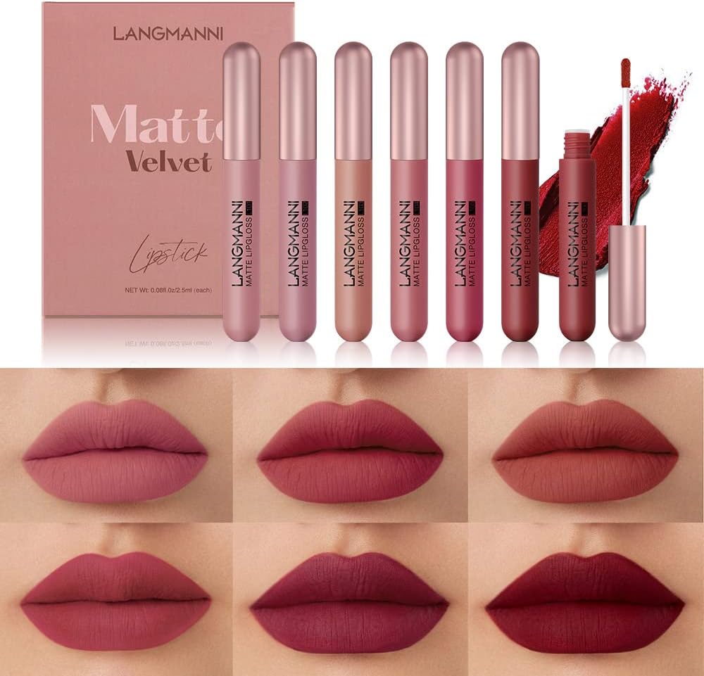 6 Colors Matte Lip Gloss Set Moisturizing Non-Stick Cup Velvet Lip Gloss Lipstick Set