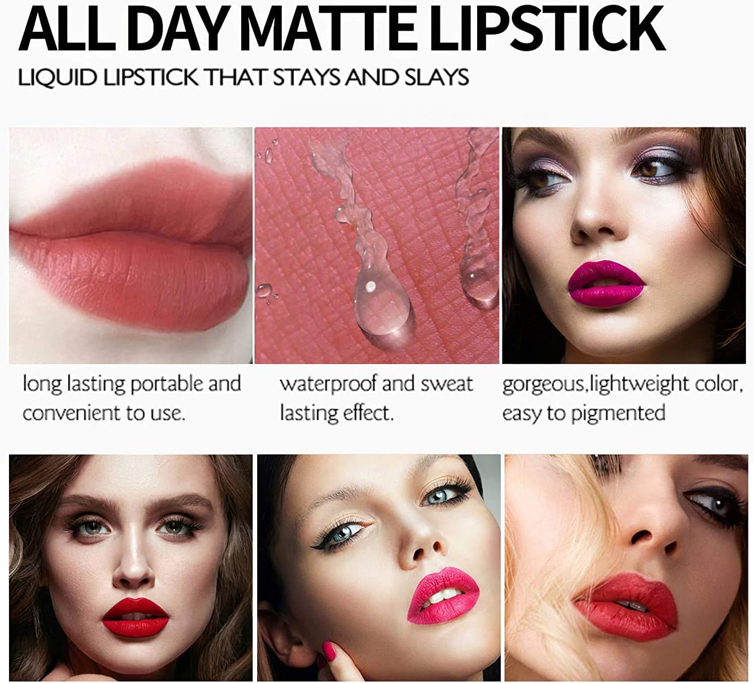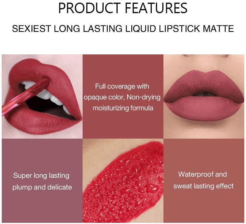 6 Pcs Matte Liquid Lipstick Set Lip Gloss Clear Labiales Makeup Non-Stick Cup Not Fade Nude Waterproof Long Lasting Lip Sticks That Brings Out Natural Color Gift For Women