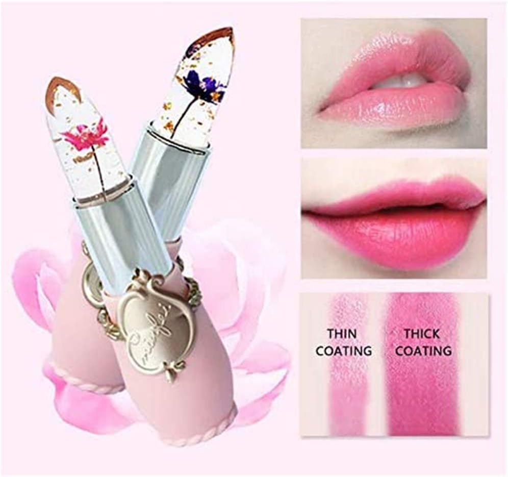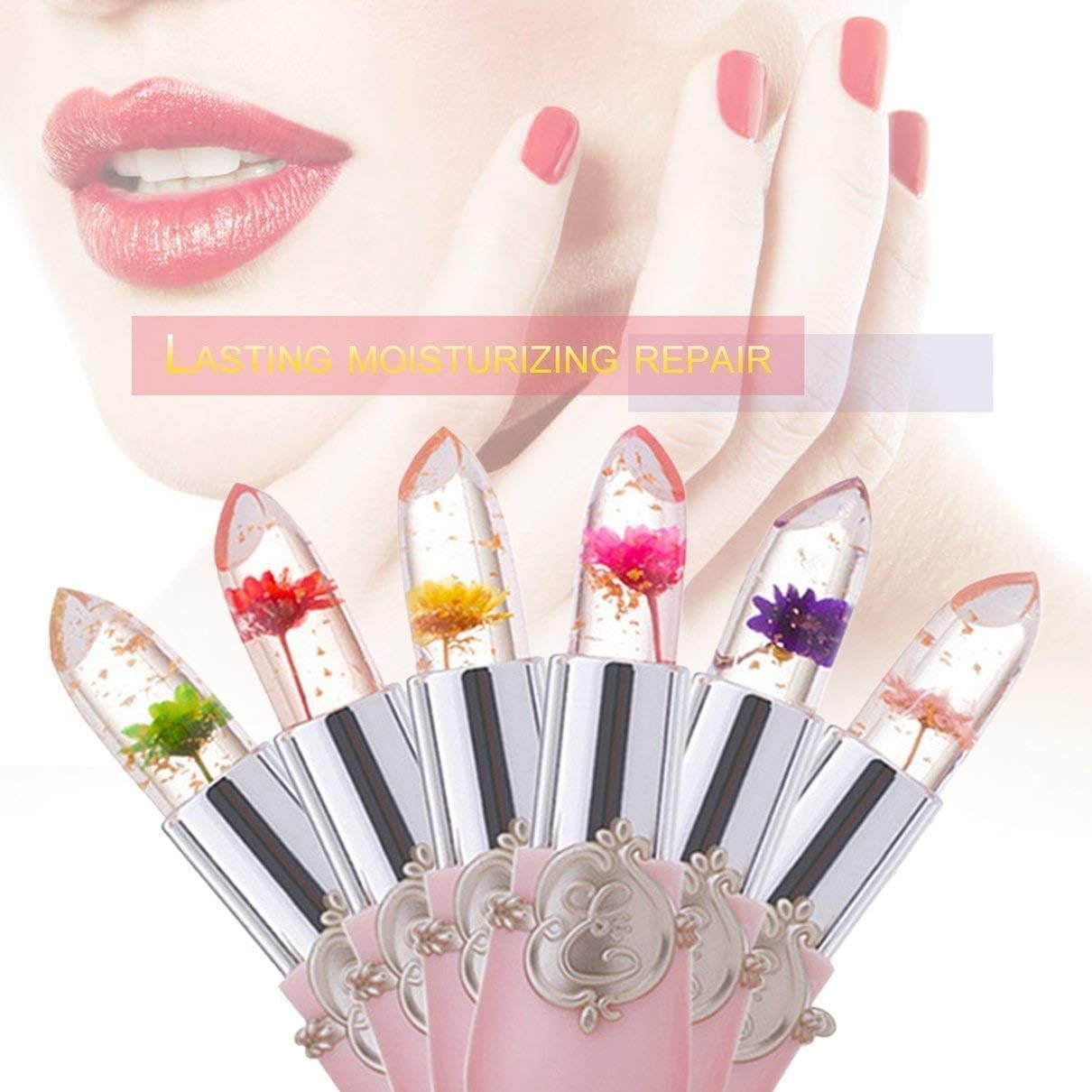 6Pcs Transparent Change Color Lip Balm Moisturizer Pink Crystal Jelly Flower Lipstick Long-Lasting Magic Temperature Lip Makeup