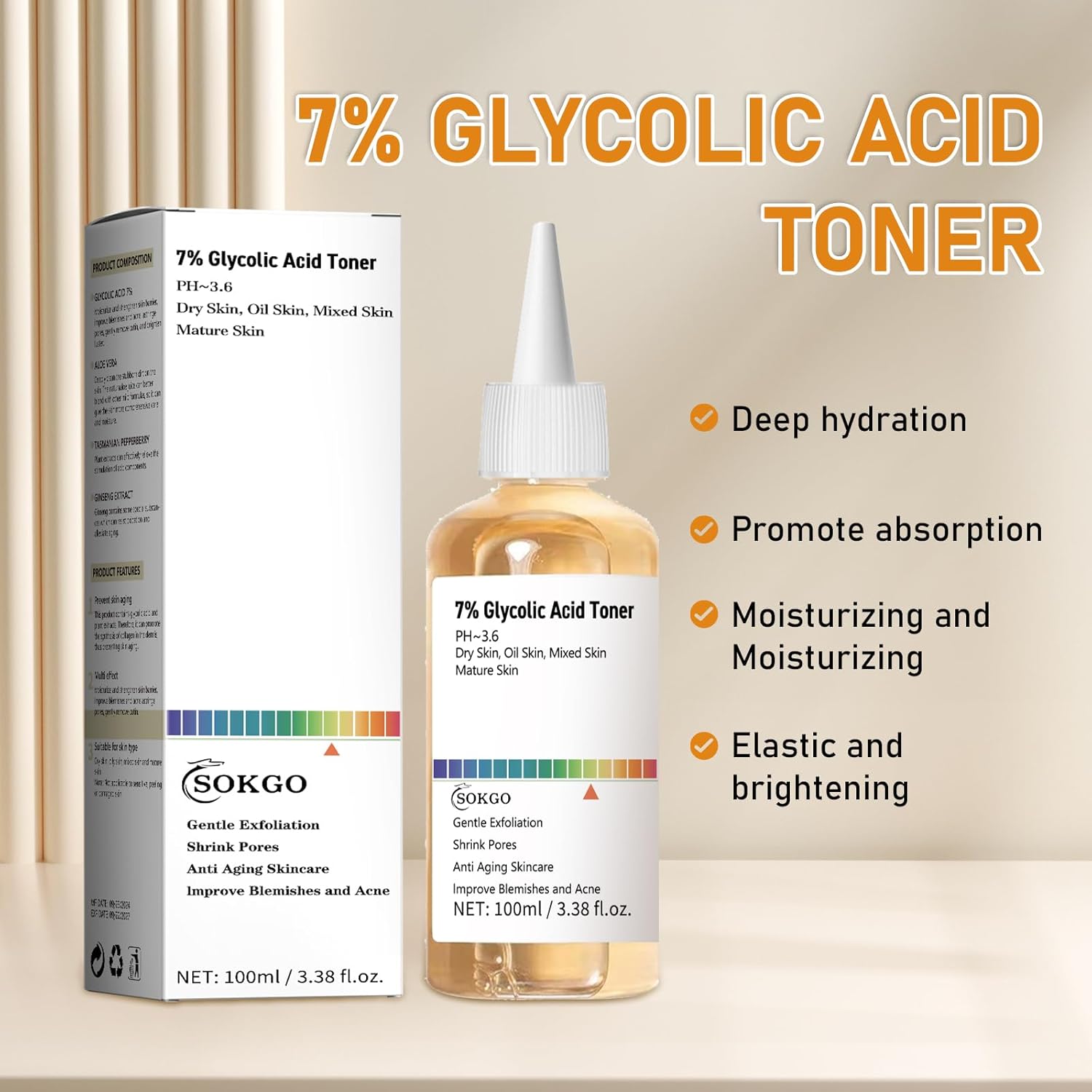 7% Glycolic Acid Exfoliating Toner, Exfoliating Facial Toner, Pore Minimizing Toner, Smooth Skin, Even Tone, Hydrating Formula