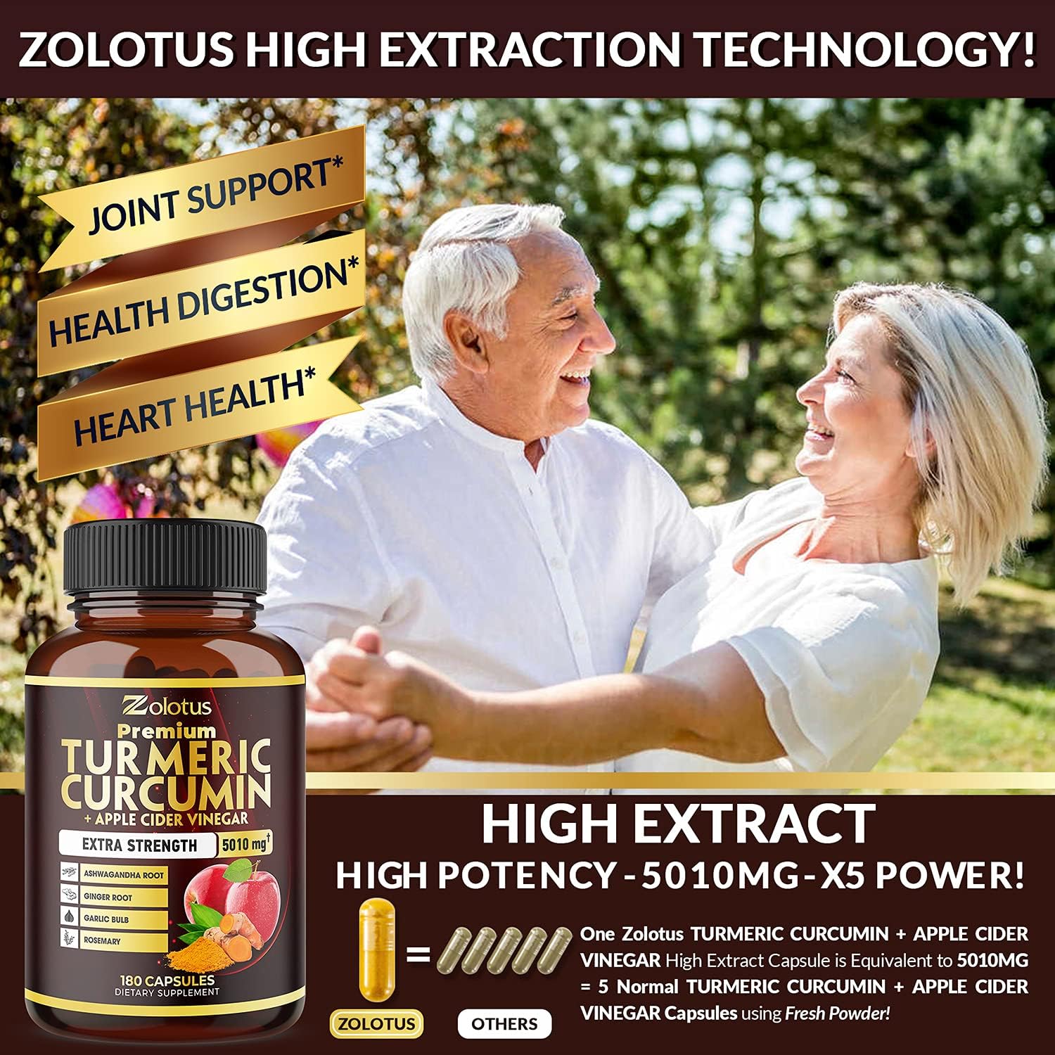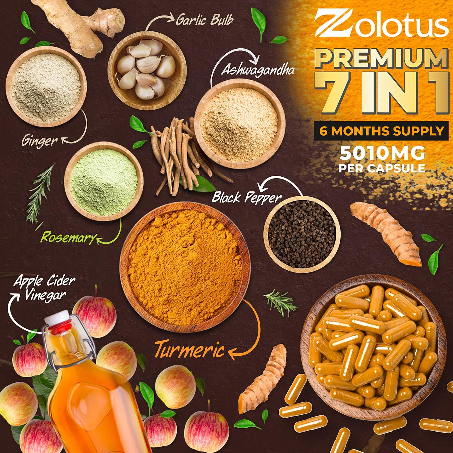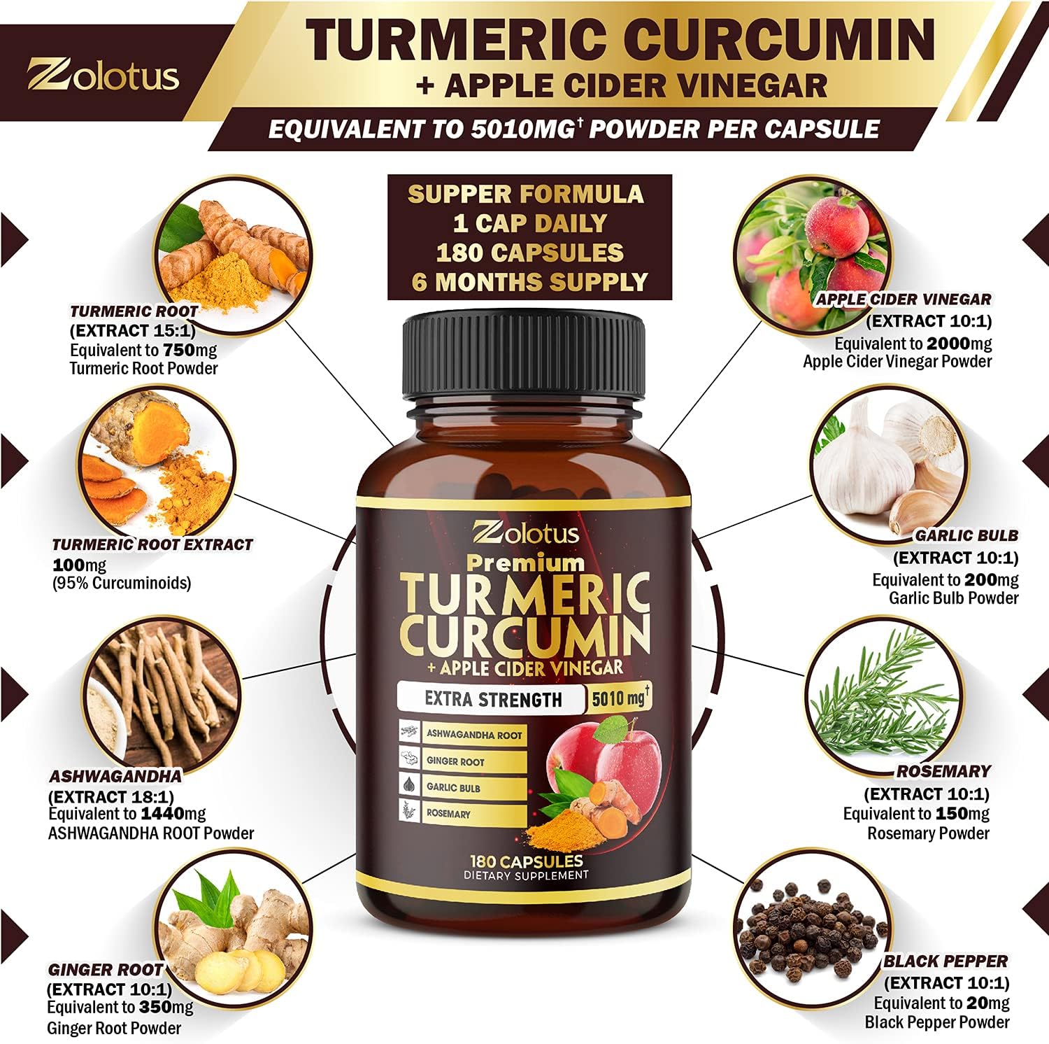 11 In 1 : Zolotus Turmeric Curcumin Supplements Included Apple Cider Vinegar, Ashwagandha Root, Ginger Root, Garlic Bulb, Rosemary, Black Pepper