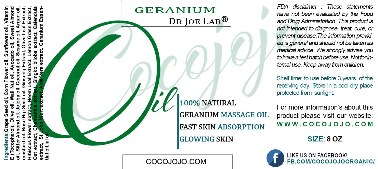 8 Oz 100% Natural Geranium Massage Oil In Jojoba Blend - Pelargonium Graveolens - Hohoba - Simmondsia Chinenis