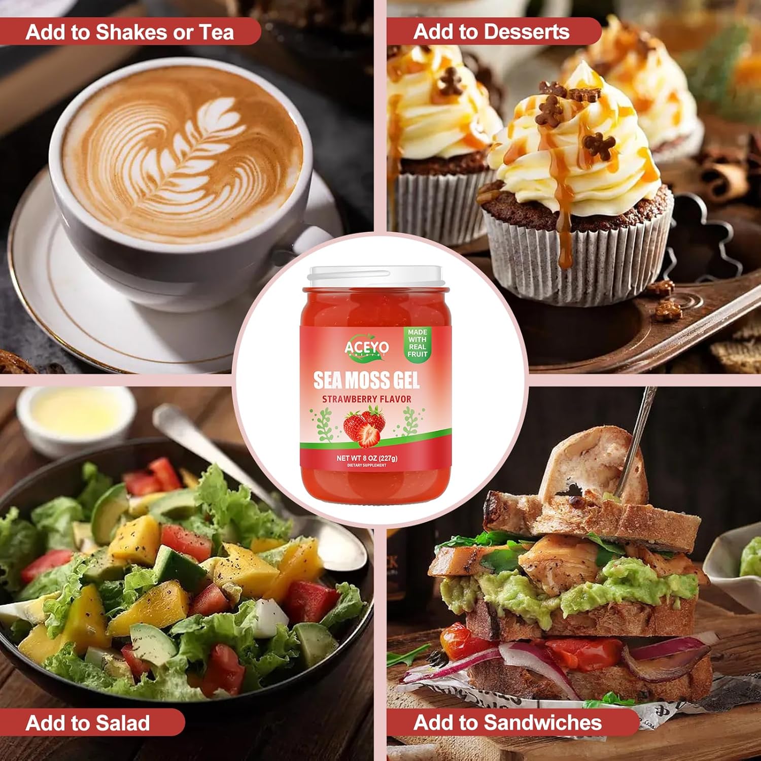 Multiple Ways To Enjoy ItOur Irish Sea Moss Gel For Women Men, Has Strawberry Flavor, Is Great For Smoothies, Shakes, Teas, Juices, Soups And Desserts,Use It As An Ingredient In Your Favorite Salad Or Make Some Sandwiches