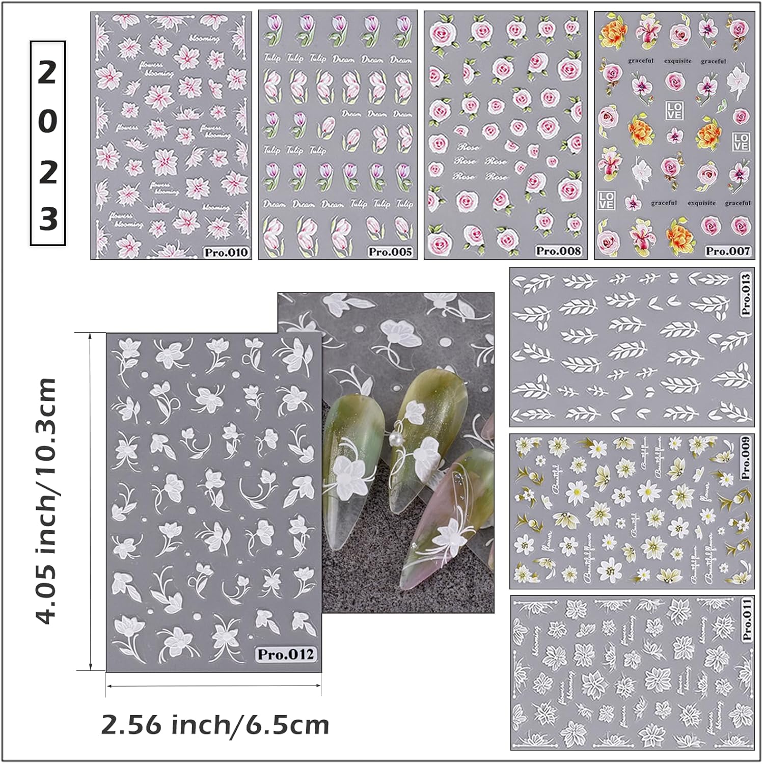 Package ContentsComes With 8 Self-Adhesive 5D Nail Art Stickers (10.3*6.5Cm/4*2.5Inch) With Flowers Blooming, Butterfly, Tulip, Roses And Daisies And Other Patterns. The Perfect Gift For Girlfriends, Mothers And Wives