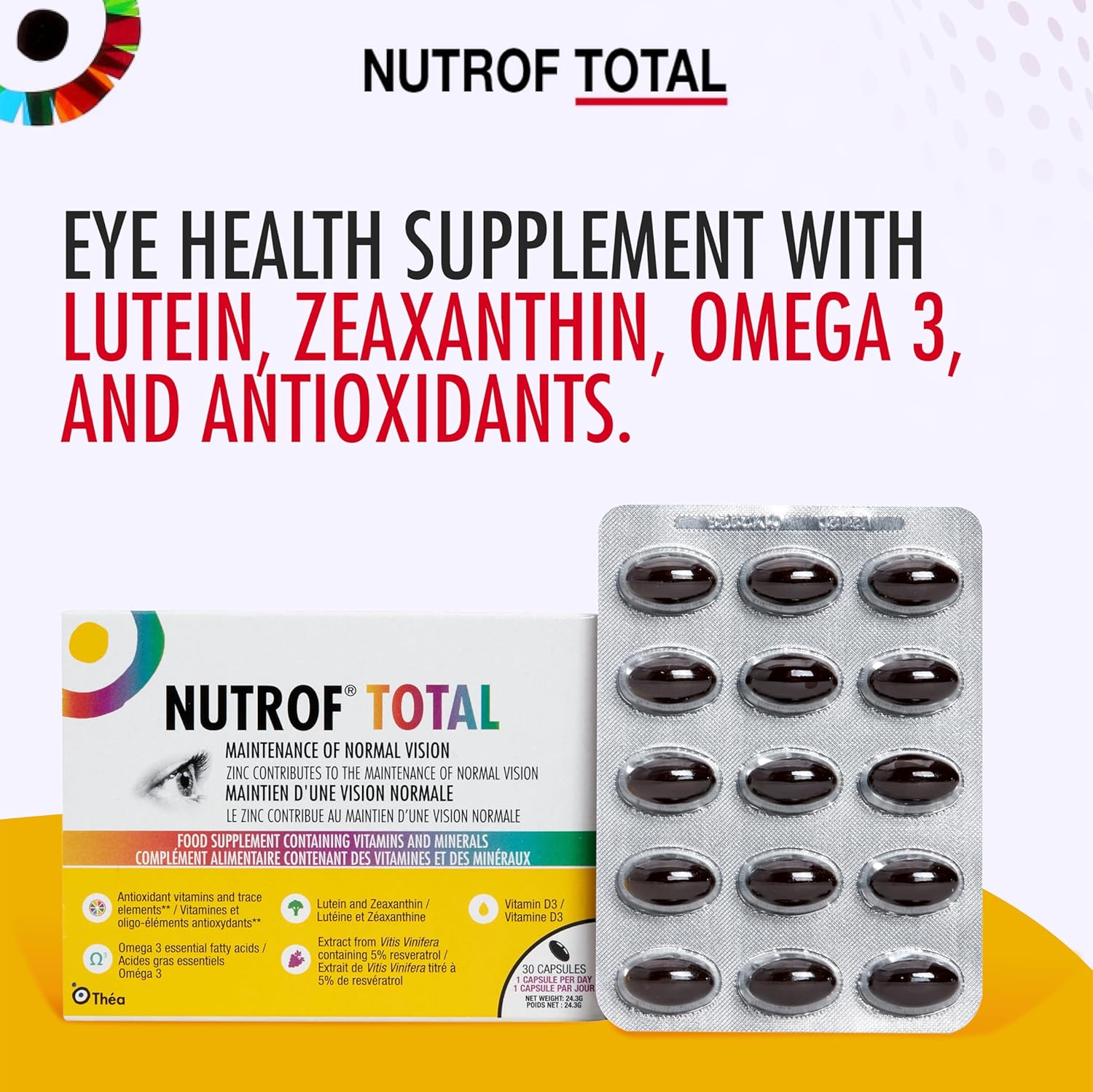 90 Nutrof Total Capsules β Eye Health Supplement With Lutein, Zeaxanthin, Omega 3, And Antioxidants | Daily Dose Of Essential Nutrients For Optimal Eye Health | 30 Capsules X 3 Packs (3-Month Supply)
