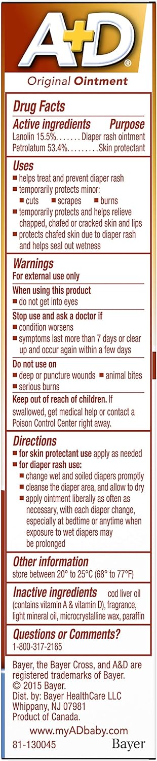 Use it at every changing to help avoid another diaper rash10The special formula includes vitamins A and D and lanolin and is gentle enough to use every day10Great for the diaper bag102 pack of A & D Diaper Rash Ointment & Skin Protectant, Original. 1.5 ounces in each pack. Total of 3 Ounce10