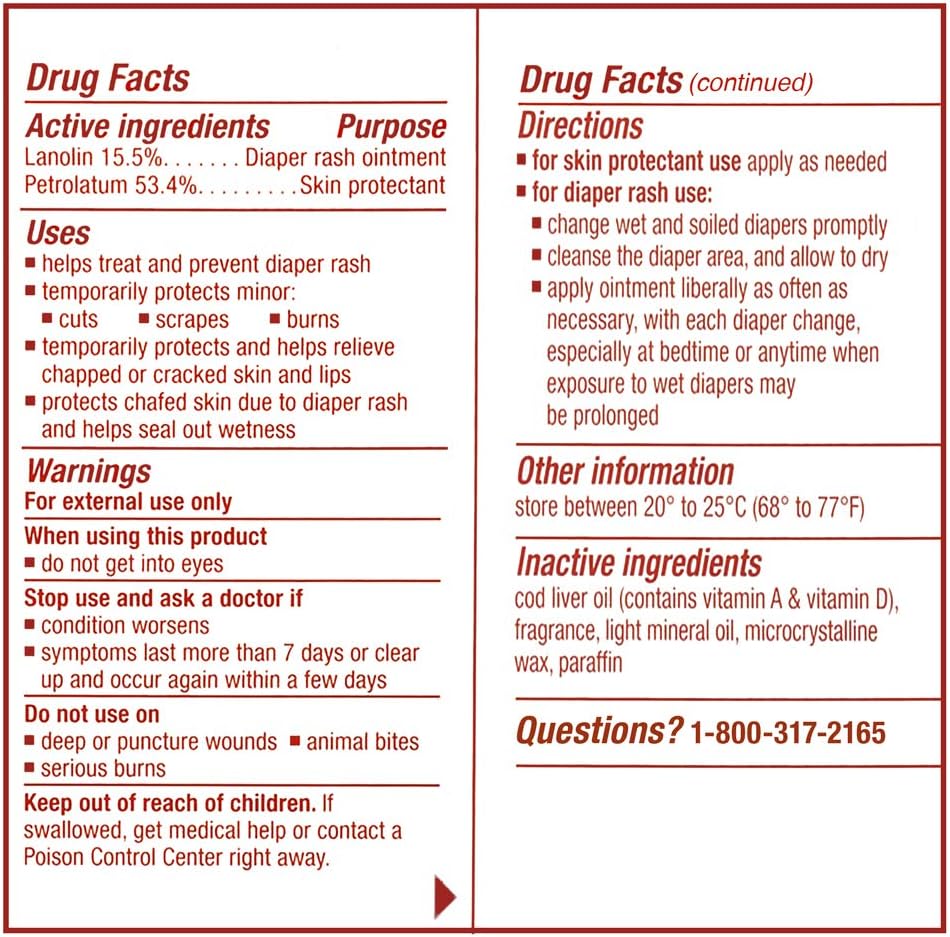 PEDIATRICIAN RECOMMENDED: A+D Original Ointment is a top choice among baby skincare products recommended by pediatricians10TREATS AND PREVENTS DIAPER RASH: Lanolin and petrolatum combine to soothe and prevent diaper rash and sore bottom for your precious baby10PROTECTS SENSITIVE SKIN: A+D Ointment, containing lanolin and petrolatum, is a skin protectant, especially formulated to protect chafed skin due to diaper rash and helps seal out wetness10EASY TO APPLY: You don't need an applicator or spatula to apply A+D to rash. This gentle formula is smooth and spreads evenly10RELIEVES YOUR CHAPPED SKIN AND LIPS: Not just for babies with sore bottoms, this cream with lanolin can also be used to treat your chafed skin and lips, too