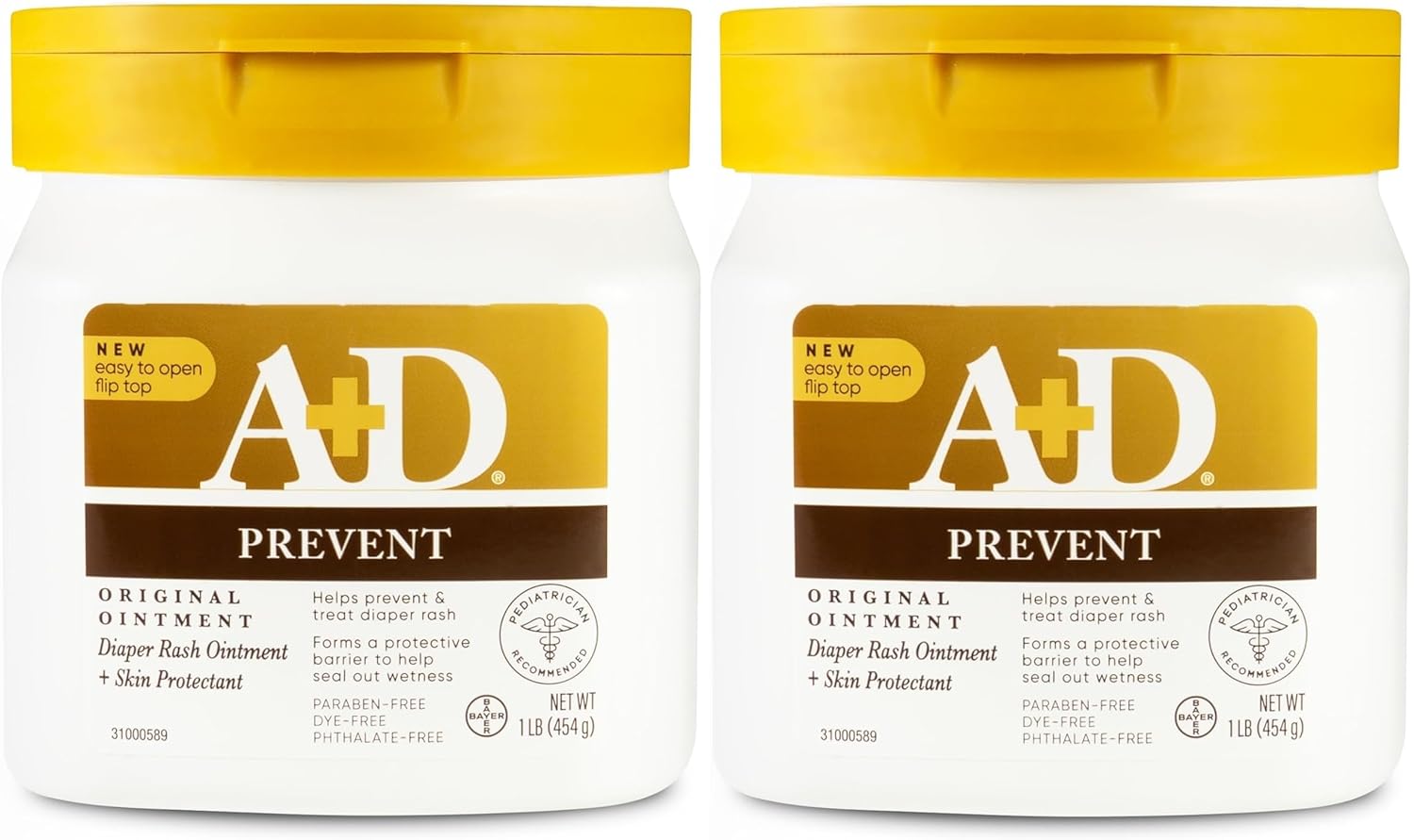 Pack of 2 - PEDIATRICIAN RECOMMENDED DIAPER RASH OINTMENT: A+D Ointment is pediatrician recommended and contains Vitamin A and vitamin D to soothe, moisturize & protect the skin. Free of parabens, dyes and phthalates10PREVENTS & TREATS DIAPER RASH: Unlike lotions and creams, A+D Diaper Rash Ointment forms a thick barrier to help to prevent diaper rash by helping to seal out wetness10RELIEVES IRRITATED SKIN: Helps relieve the discomfort of chapped, chafed, and cracked skin. Not just for babies with sore bottoms, this cream with lanolin can also be used to treat your cracked foot, skin, and lips, too10WASH, DRY, APPLY: This gentle formula is smooth, non-greasy and spreads evenly. Wash the area with soap and water, gently pat with dry cloth, apply A+D Ointment to protect the area10TRUSTED FOR 80 YEARS: Trusted for over 80 years, A+D ointment provides gentle, effective chapped skin relief