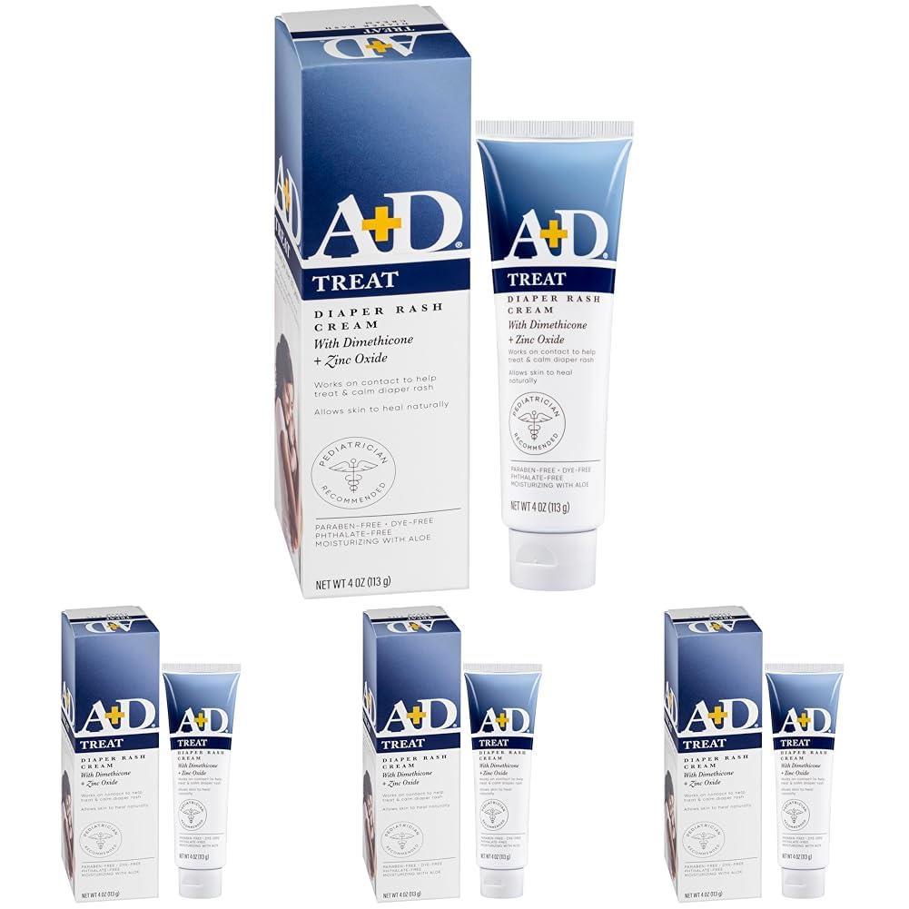 The information below is per-pack only10PEDIATRICIAN RECOMMENDED DIAPER RASH CREAM: A+D Diaper Rash Cream is pediatrician recommended and contains zinc oxide, dimethicone & soothing aloe to moisturize & protect the skin. Free of parabens, dyes and phthalates10TREATS DIAPER RASH: Dimethicone and Zinc Oxide combine for a diaper rash treatment that protects tender bottoms, allowing baby’s skin to heal naturally10WORKS ON CONTACT: Our soothing diaper cream works on contact to help treat & calm irritated skin. Use at the first sign of diaper rash as soon as redness and irritation develops under the diaper10WASH, DRY, APPLY: This gentle zinc oxide diaper rash cream is smooth, non-greasy and spreads evenly. Wash the area with soap and water, gently pat with dry cloth, apply cream to protect the area