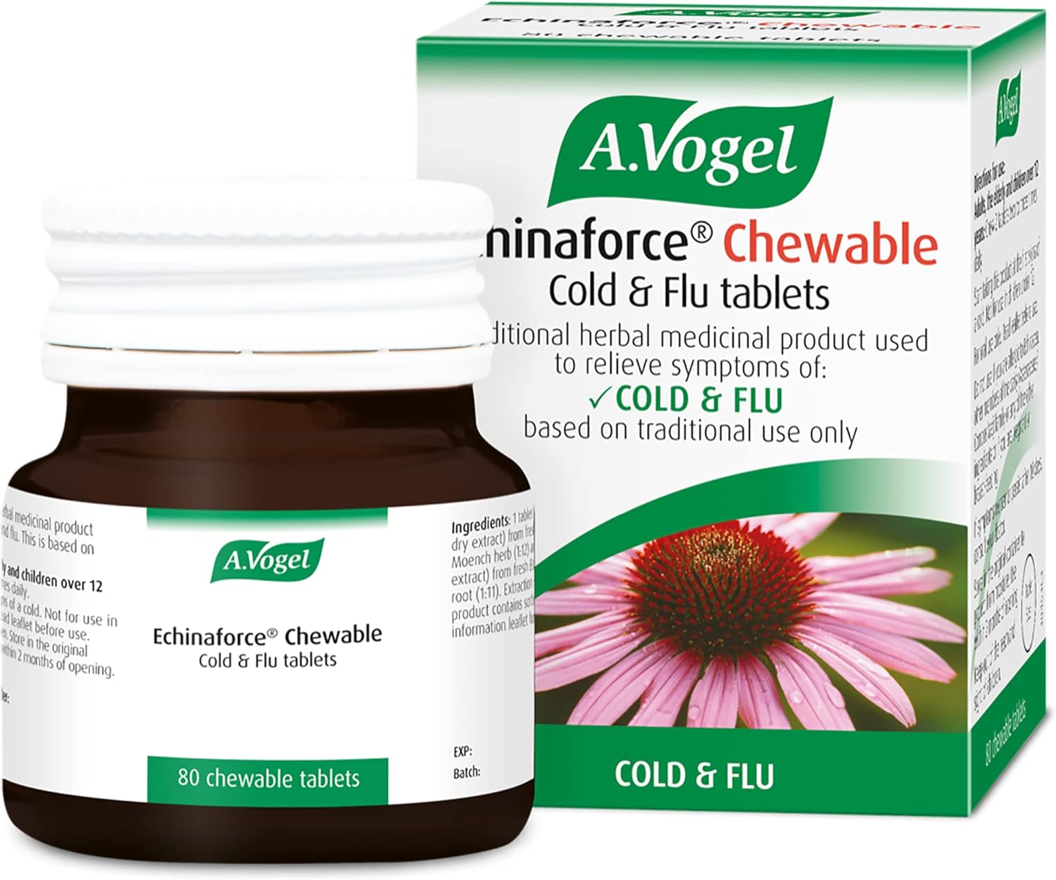 A.Vogel Echinaforce Chewable Cold & Flu Tablets | Relieve Cold & Flu Symptoms | Extracts of Fresh Echinacea | 80 Tablets