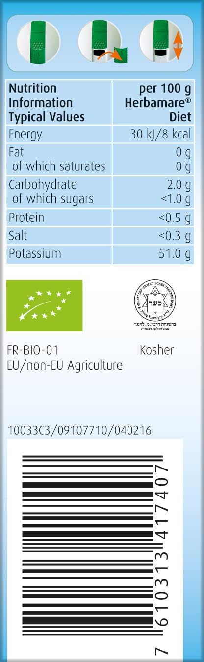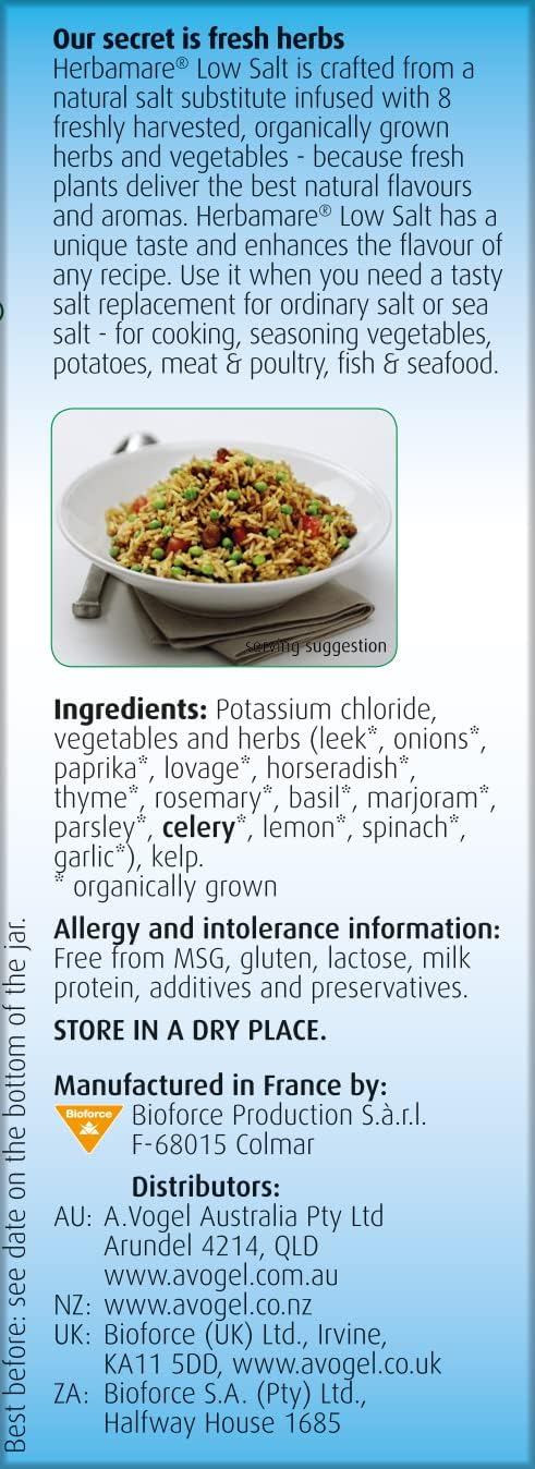 A.Vogel Herbamare Low Salt 125G | Potassium Chloride & 14 Different Fresh Organic Vegetables & Herbs | Season & Add Flavour To Cooking