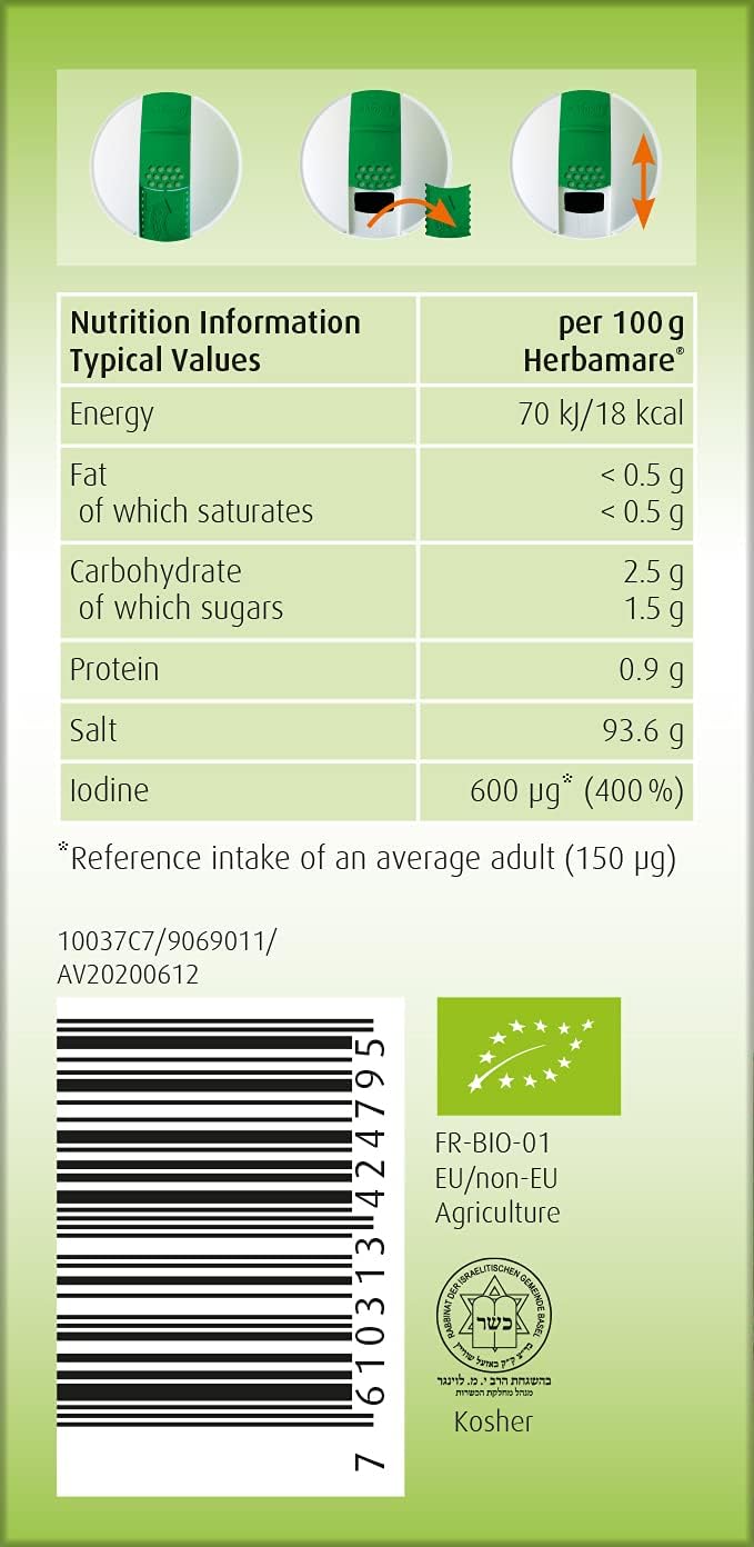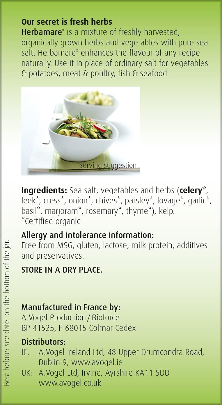 A.Vogel Herbamare Original Seasoning Salt 250G | Sea Salt With 12 Different Fresh Organic Vegetables & Herbs| Add Flavour To Cooking