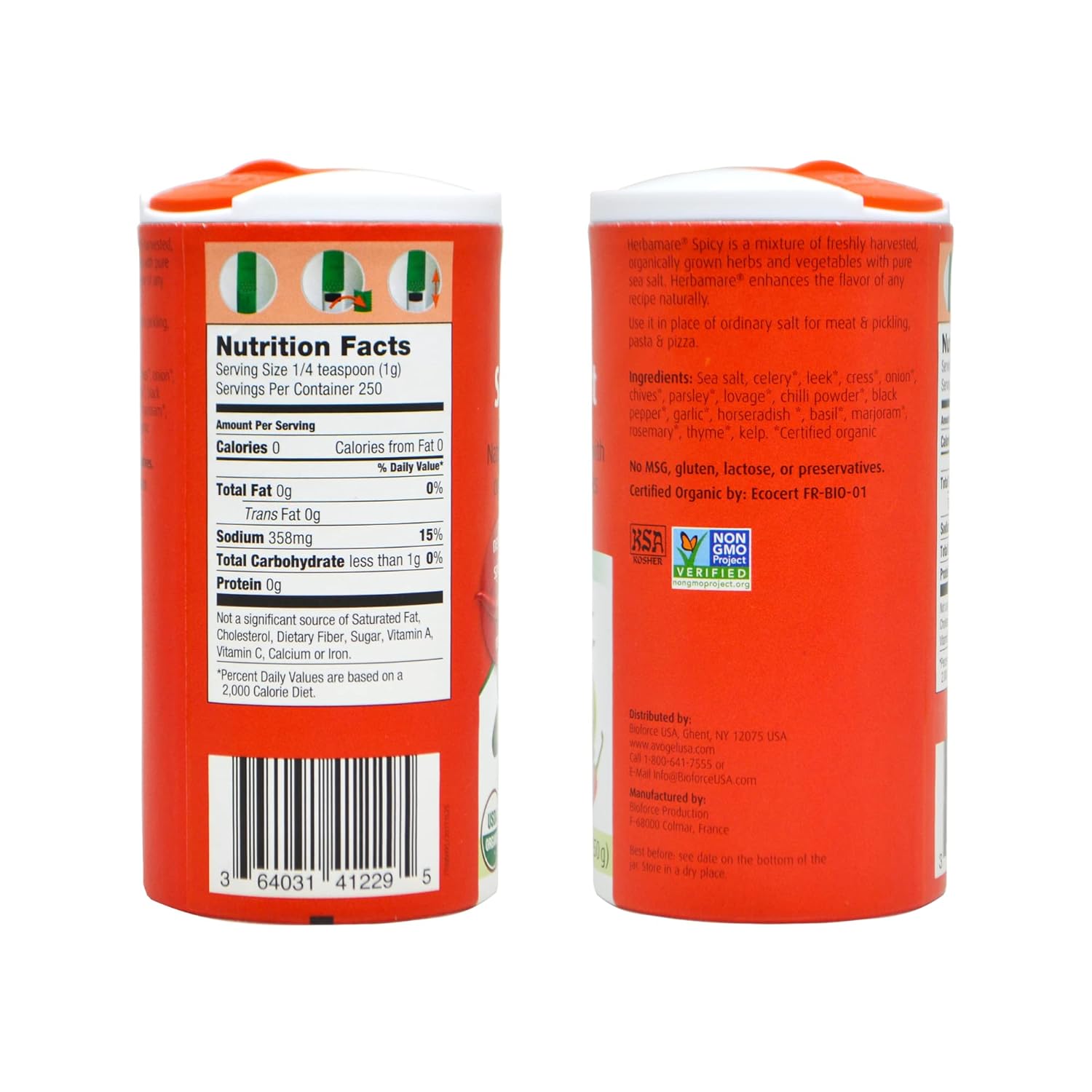 About this item HEALTHY WAY TO SALT YOUR FOOD - A pure, fine-natural sea salt harvested from the Camargue region, combined with a blend of 16 organically grown, freshly harvested, aromatic herbs and vegetables to complement any meal. Everyone wants great tasting food, but with all the additives and preservatives found in today's market, it can be a challenge to find something that tastes good and is good for you. A.Vogel Spicy Sea Salt does just that! SPICE IT UP A BIT - Amp up your BBQ or add to your Bloody Mary, whatever way you use it, you'll be amazed by this flavor experience! This seasoned salt brings out the natural taste of any food without masking it. Free of additives and preservatives our salt is abundant with Kelp, a naturally derived source of Iodine. Sea Salt requires very little processing which means it contains trace minerals, unlike its counterpart mined salt, which is stripped of minerals during processing. PUREST FLAVOR OPTION - For centuries, the Camargue region in France has been known for its unique process of gathering salt from the sea. Sea salt contains trace minerals such as magnesium, calcium, and potassium. Our Herbed Sea Salt (Herbamare) is not only USDA Organic but also Non-GMO Project Verified to ensure only the purest and best ingredients are used. Perfect for those following a keto and paleo lifestyle. ORGANIC INGREDIENTS WITH BENEFITS - Each ingredient in our Spicy Sea Salt has been hand-selected with the ingredients' taste and benefits and your health in mind. Only fresh celery, leeks, cress, onions, chives, parsley, lovage, garlic, basil, marjoram, rosemary, thyme, kelp, black pepper, chili pepper, and horseradish make the cut. THE WORLD OF NATURAL HEALTH - Alfred Vogel, Swiss naturopath, nutritional therapist, influential researcher, and innovator of natural health products, understood how nature works and how it heals the body, naturally. Our products harness the healing powers of nature with effective natural remedies and medicinal products made from freshly harvested plants. We provide a line of healthy salts made from organic raw materials. See more product details,HEALTHY WAY TO SALT YOUR FOOD - A pure, fine-natural sea salt harvested from the Camargue region, combined with a blend of 16 organically grown, freshly harvested, aromatic herbs and vegetables to complement any meal. Everyone wants great tasting food, but with all the additives and preservatives found in today's market, it can be a challenge to find something that tastes good and is good for you. A.Vogel Spicy Sea Salt does just that!,SPICE IT UP A BIT - Amp up your BBQ or add to your Bloody Mary, whatever way you use it, you'll be amazed by this flavor experience! This seasoned salt brings out the natural taste of any food without masking it. Free of additives and preservatives our salt is abundant with Kelp, a naturally derived source of Iodine. Sea Salt requires very little processing which means it contains trace minerals, unlike its counterpart mined salt, which is stripped of minerals during processing,PUREST FLAVOR OPTION - For centuries, the Camargue region in France has been known for its unique process of gathering salt from the sea. Sea salt contains trace minerals such as magnesium, calcium, and potassium. Our Herbed Sea Salt (Herbamare) is not only USDA Organic but also Non-GMO Project Verified to ensure only the purest and best ingredients are used. Perfect for those following a keto and paleo lifestyle,ORGANIC INGREDIENTS WITH BENEFITS - Each ingredient in our Spicy Sea Salt has been hand-selected with the ingredients' taste and benefits and your health in mind. Only fresh celery, leeks, cress, onions, chives, parsley, lovage, garlic, basil, marjoram, rosemary, thyme, kelp, black pepper, chili pepper, and horseradish make the cut,THE WORLD OF NATURAL HEALTH - Alfred Vogel, Swiss naturopath, nutritional therapist, influential researcher, and innovator of natural health products, understood how nature works and how it heals the body, naturally. Our products harness the healing powers of nature with effective natural remedies and medicinal products made from freshly harvested plants. We provide a line of healthy salts made from organic raw materials